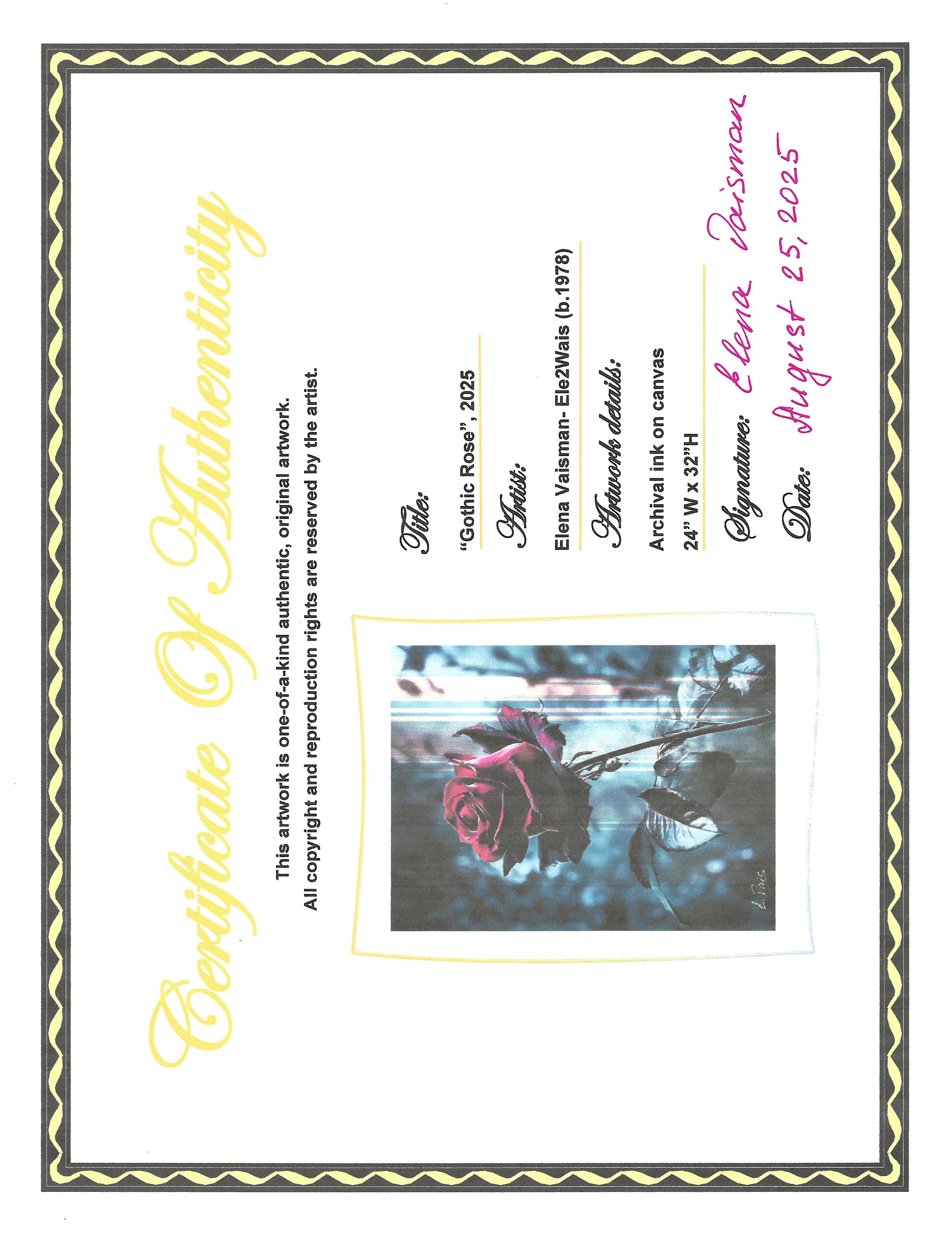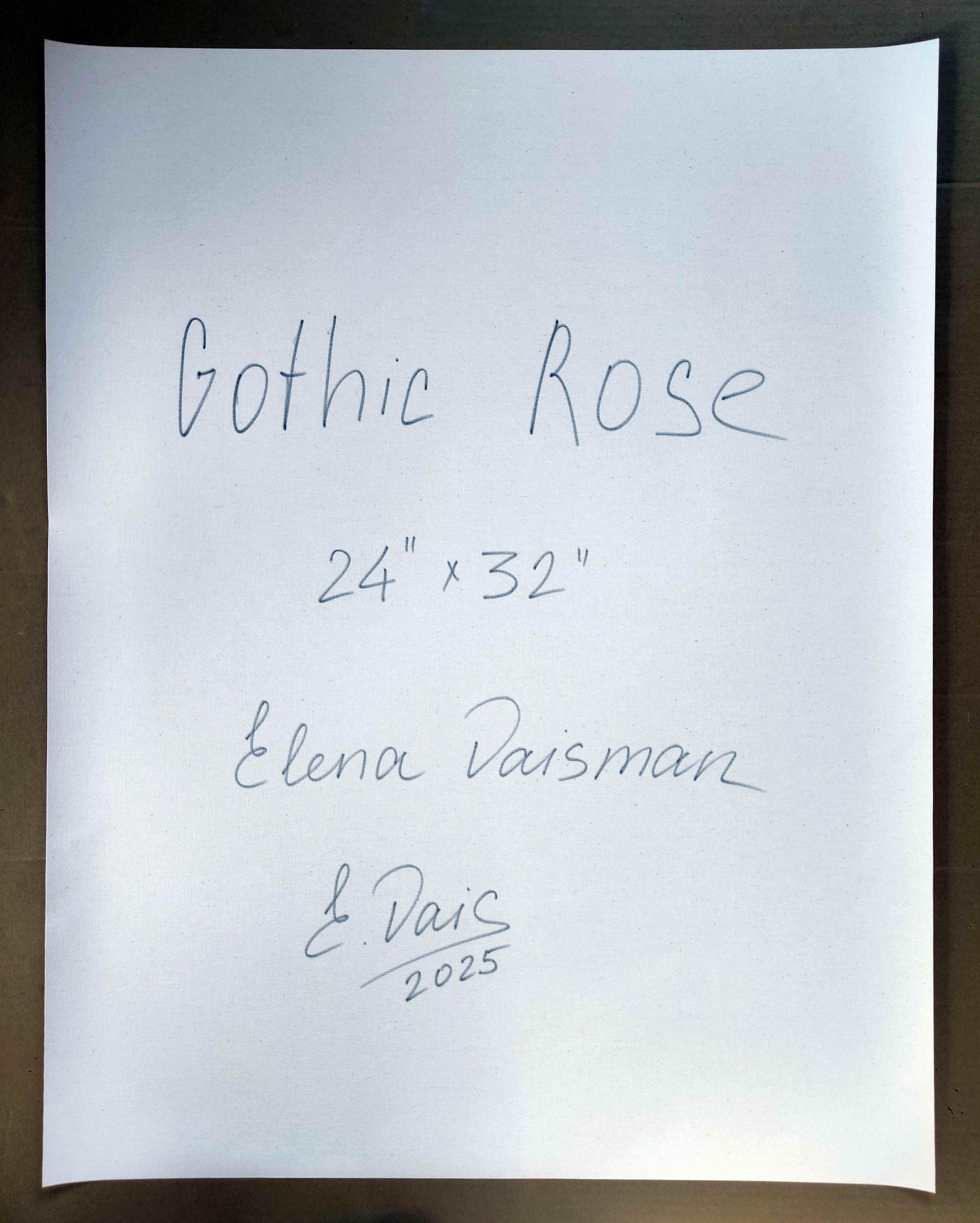 2025 "Gothic Rose" 24" x 32" archival ink painting on canvas. Signed by artist, Elena Vaisman. Date and signed on the back. Please refer to photos for more details on the condition of the item.