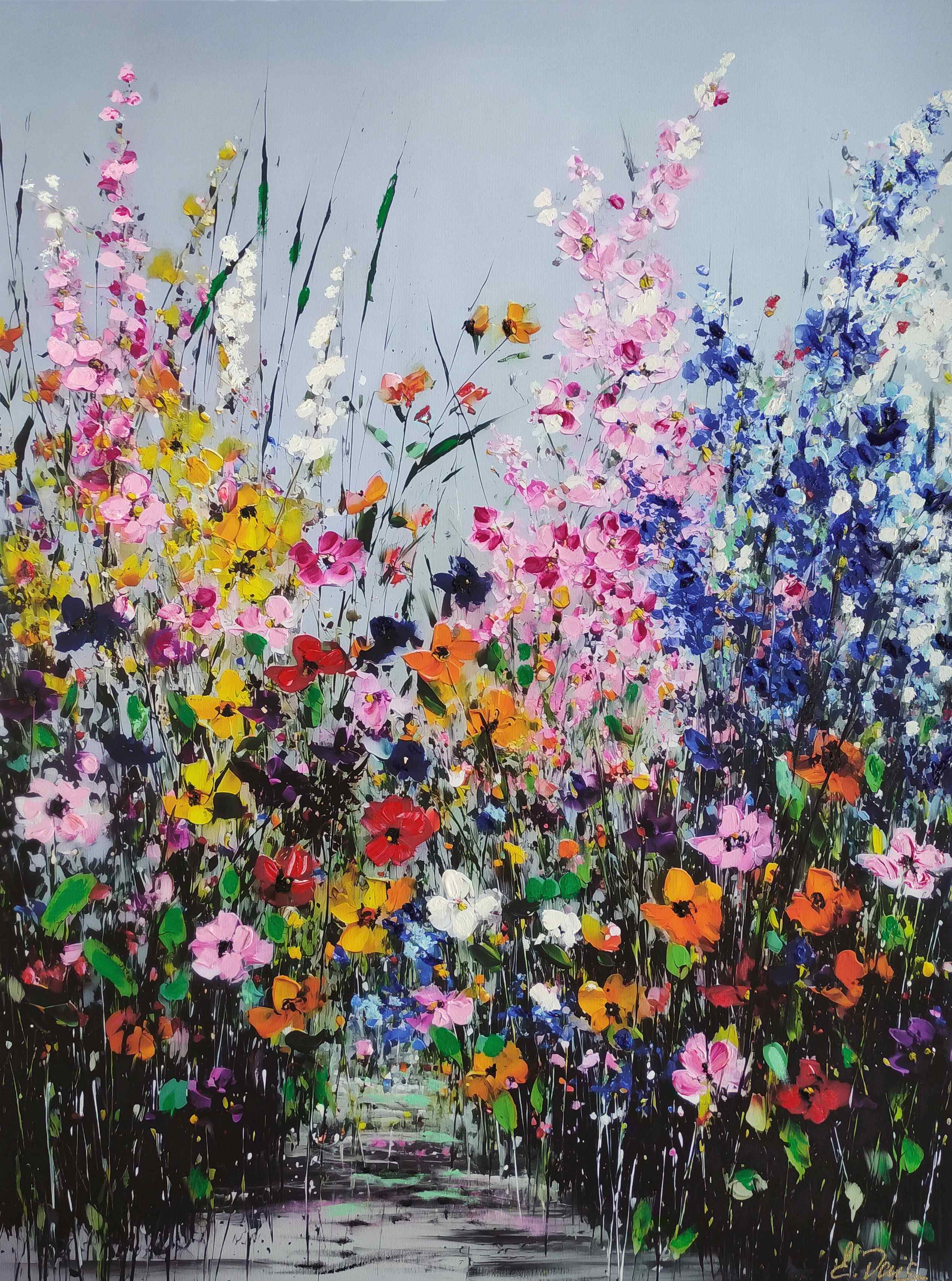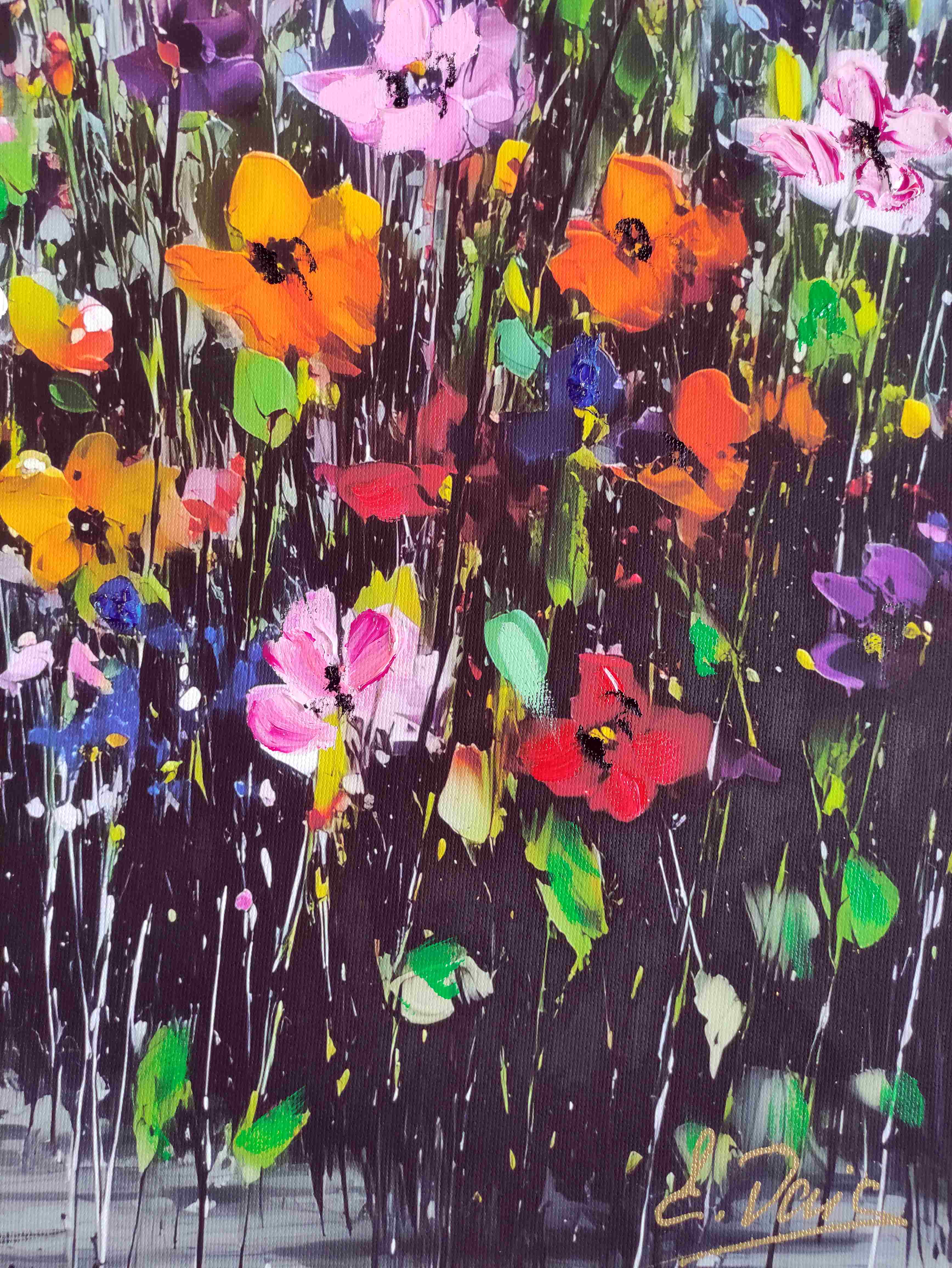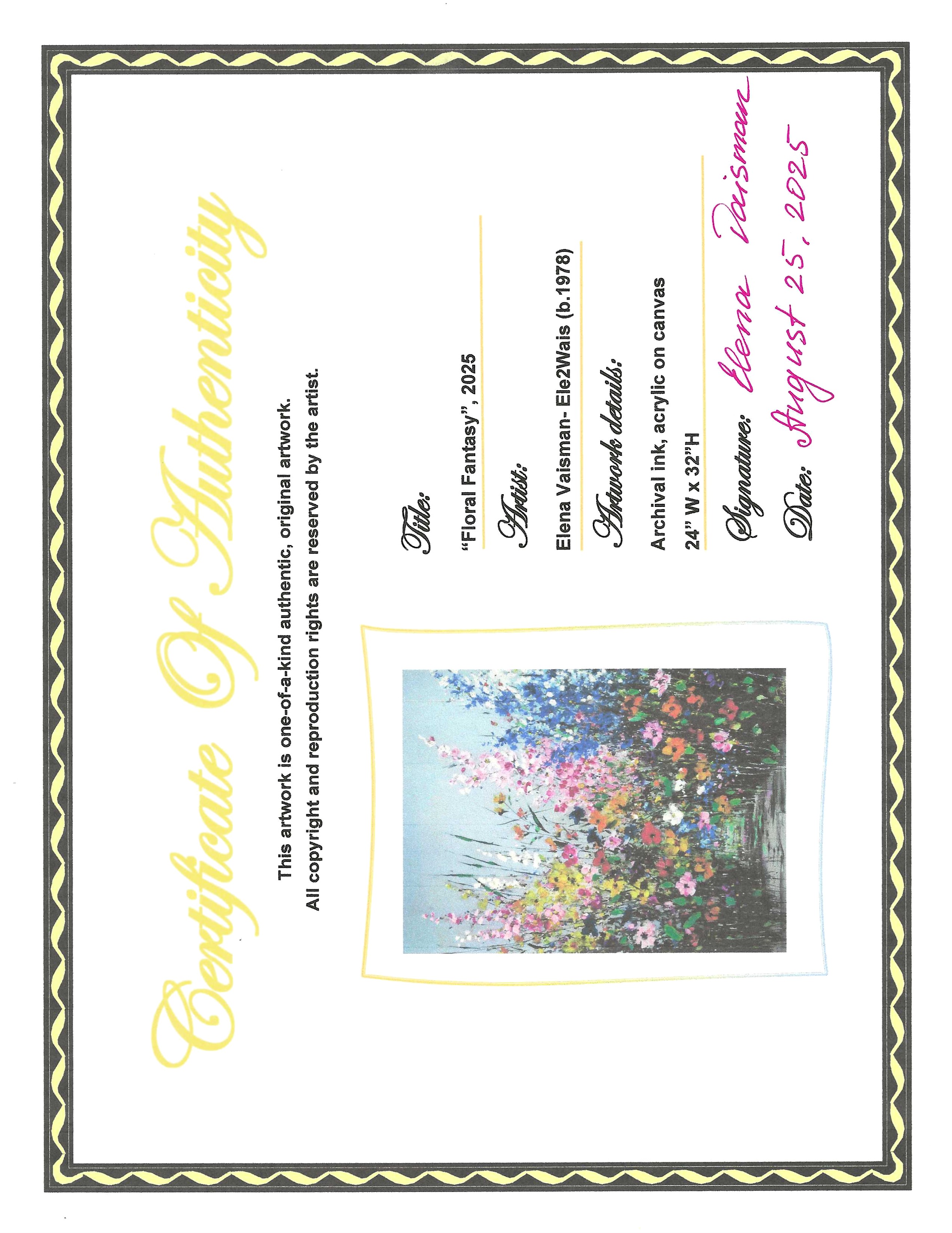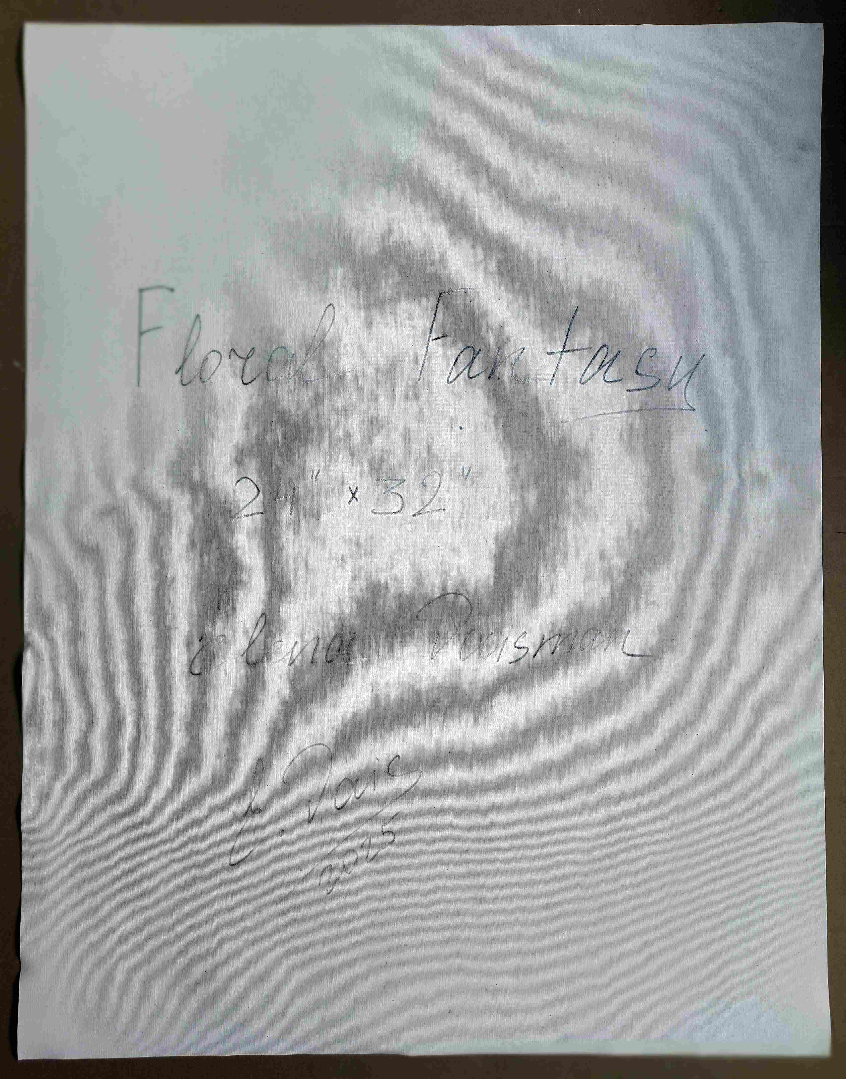 2025 "Floral Fantasy" 24" x 32" archival ink painting on canvas. Signed by artist, Elena Vaisman. Date and signed on the back. Please refer to photos for more details on the condition of the item.