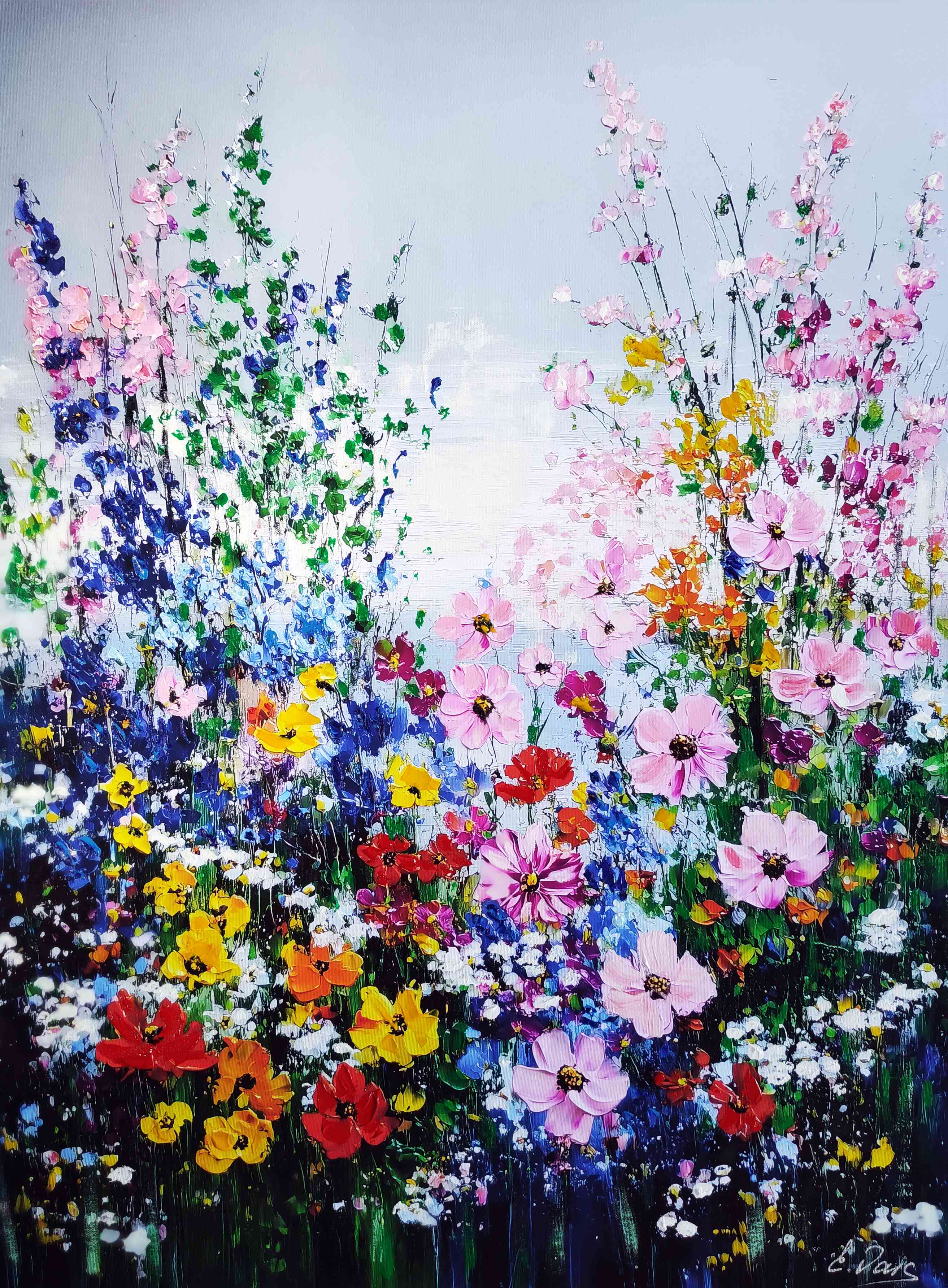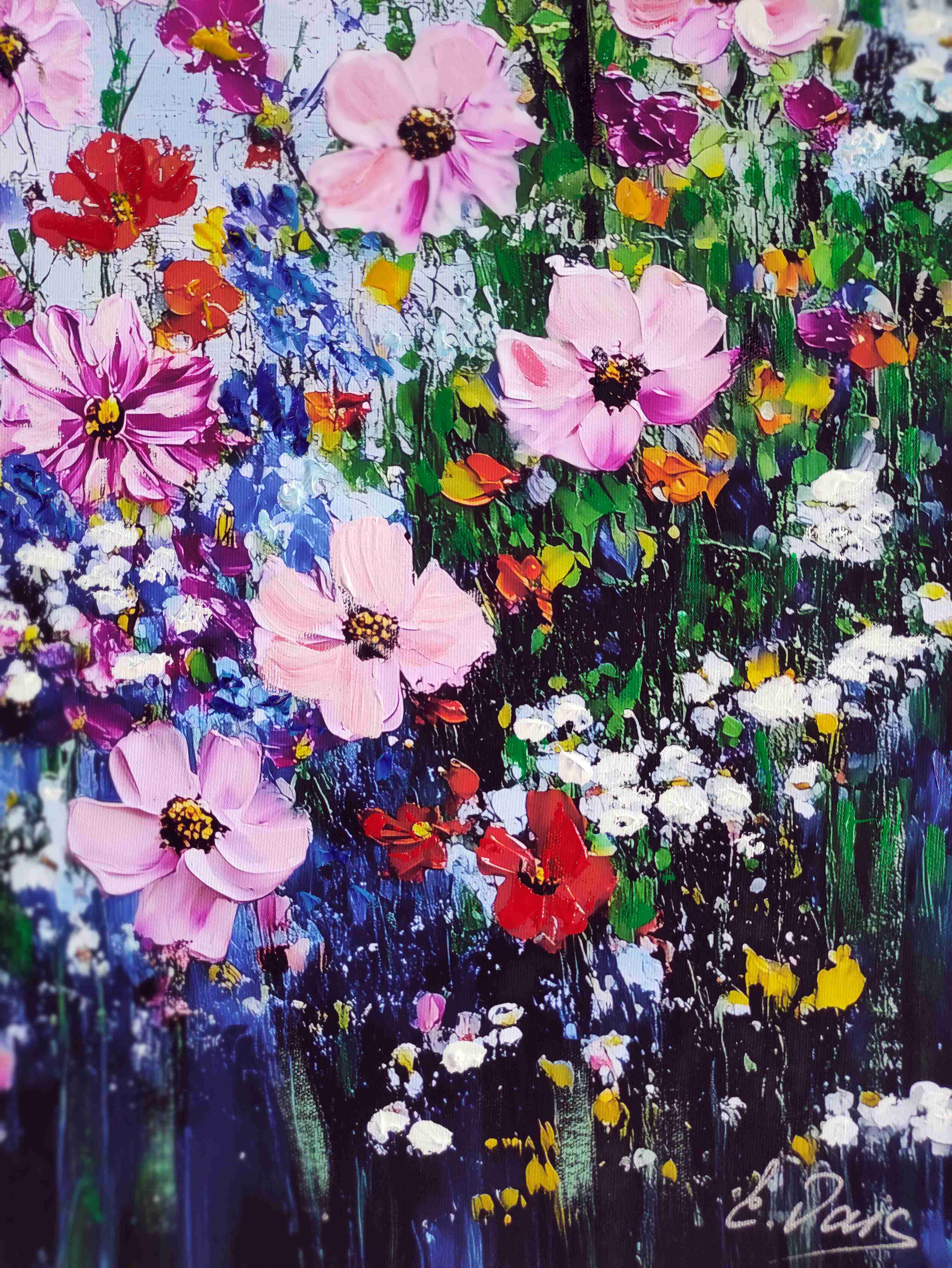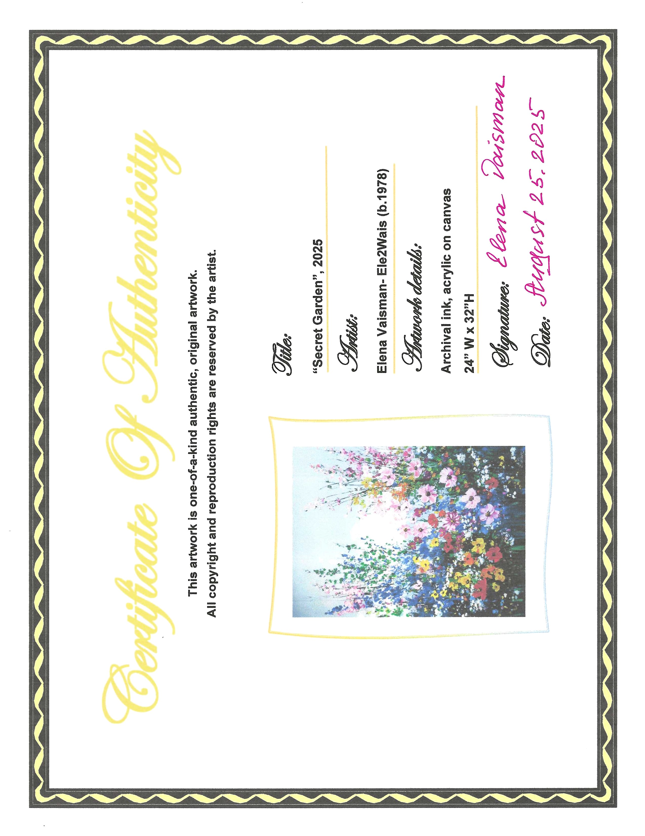 2025 "Secret Garden" 24" x 32" archival ink painting on canvas. Signed by artist, Elena Vaisman. Date and signed on the back. Please refer to photos for more details on the condition of the item.