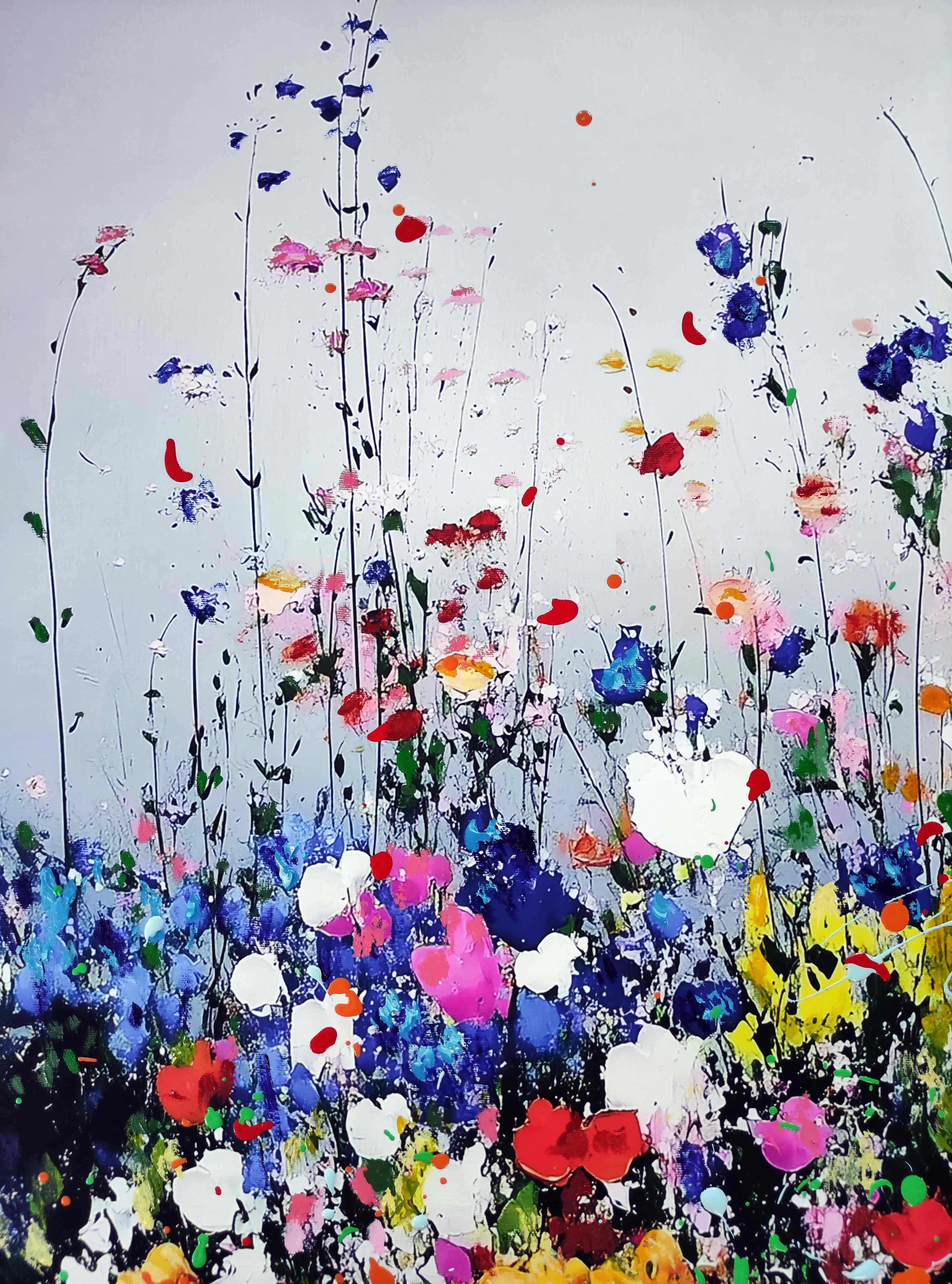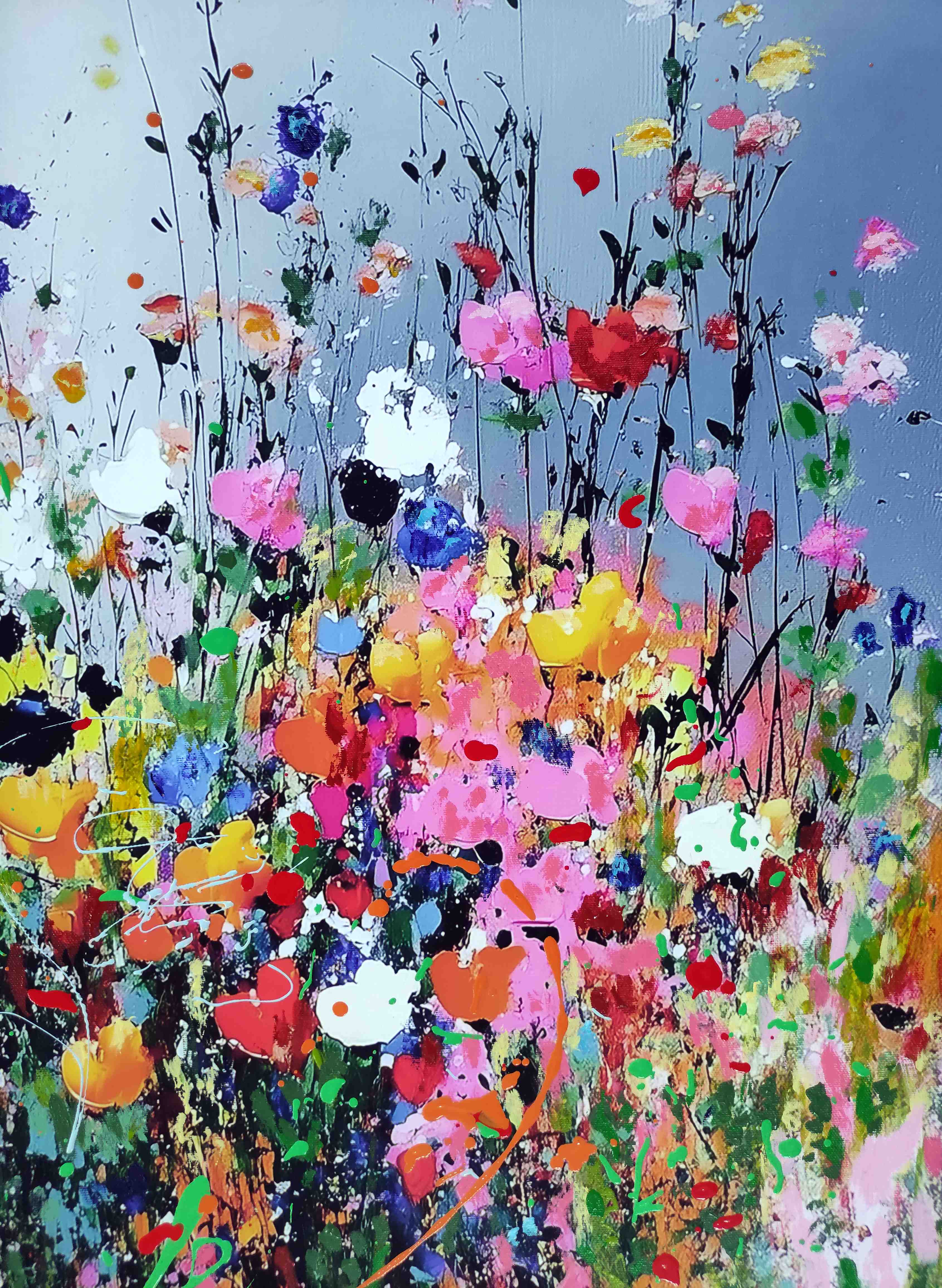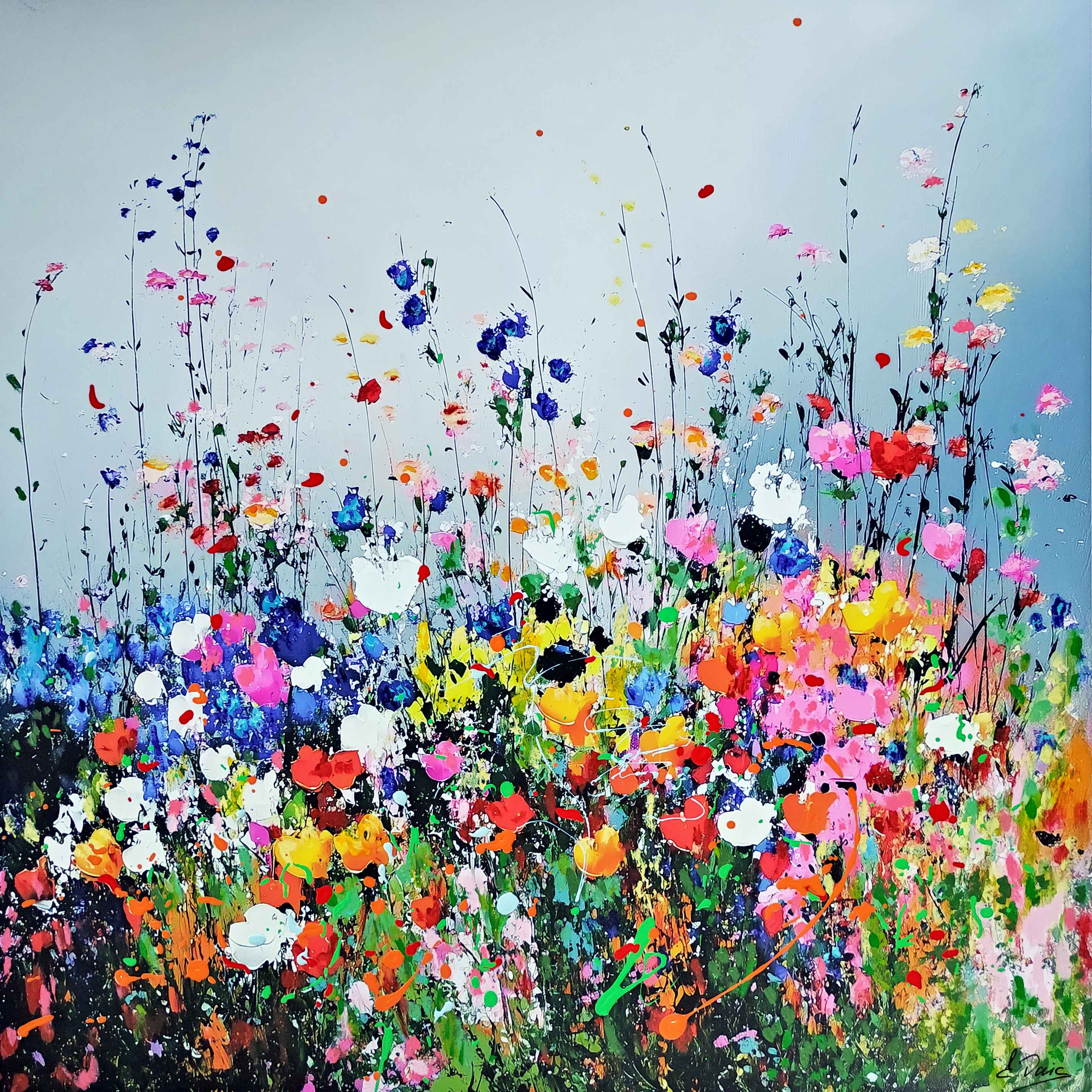 "Colorful Garden" 32x32 Original Acrylic Archival Ink Painting on Rolled Canvas by Elena Vaisman #1/1