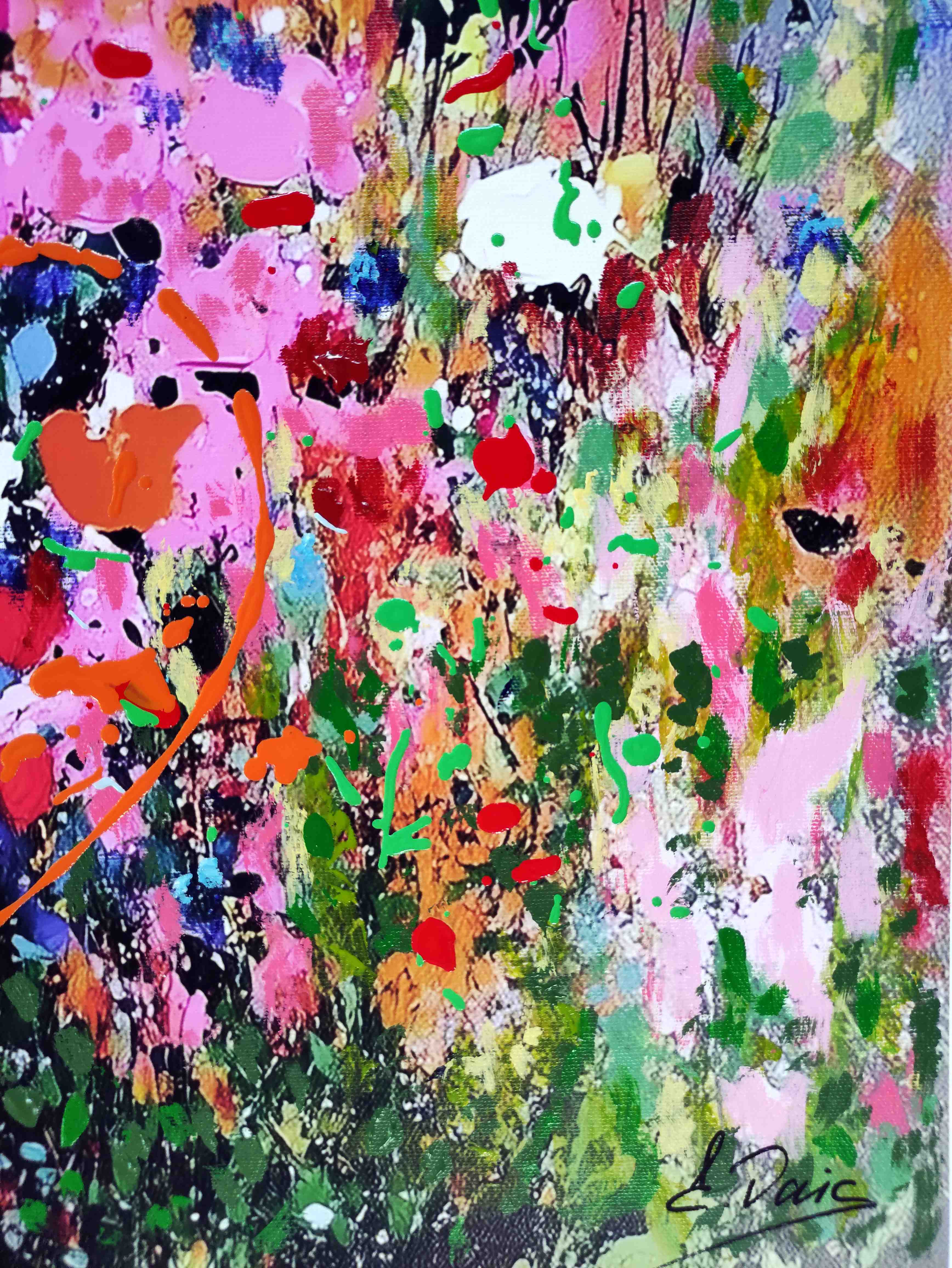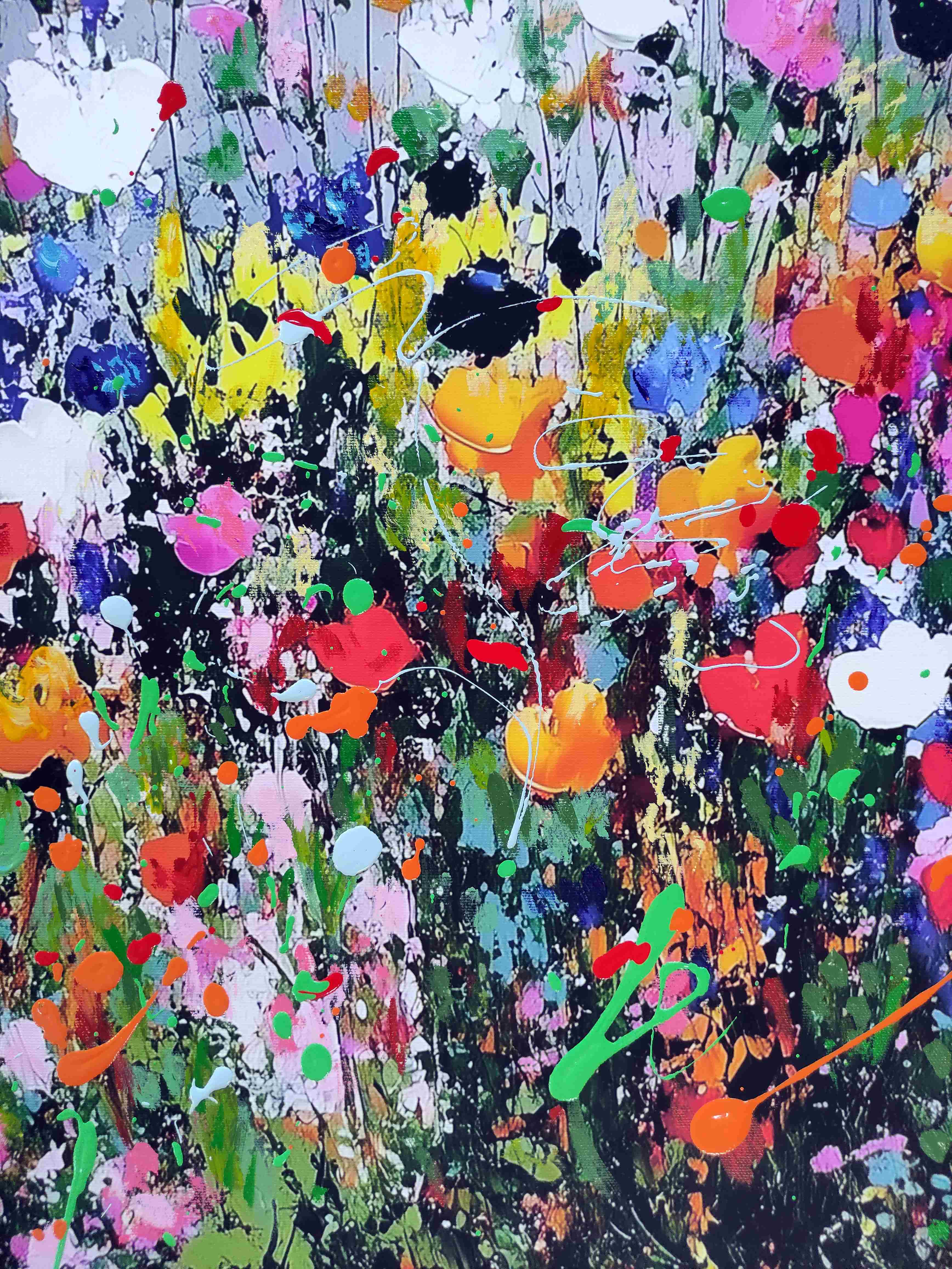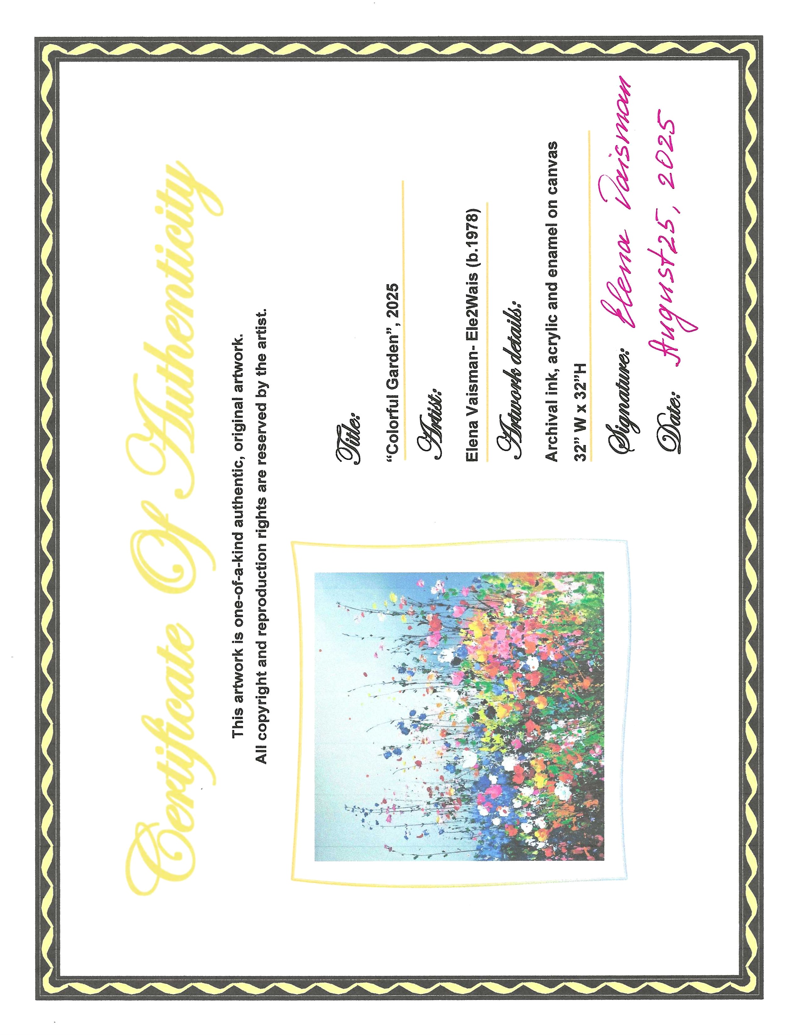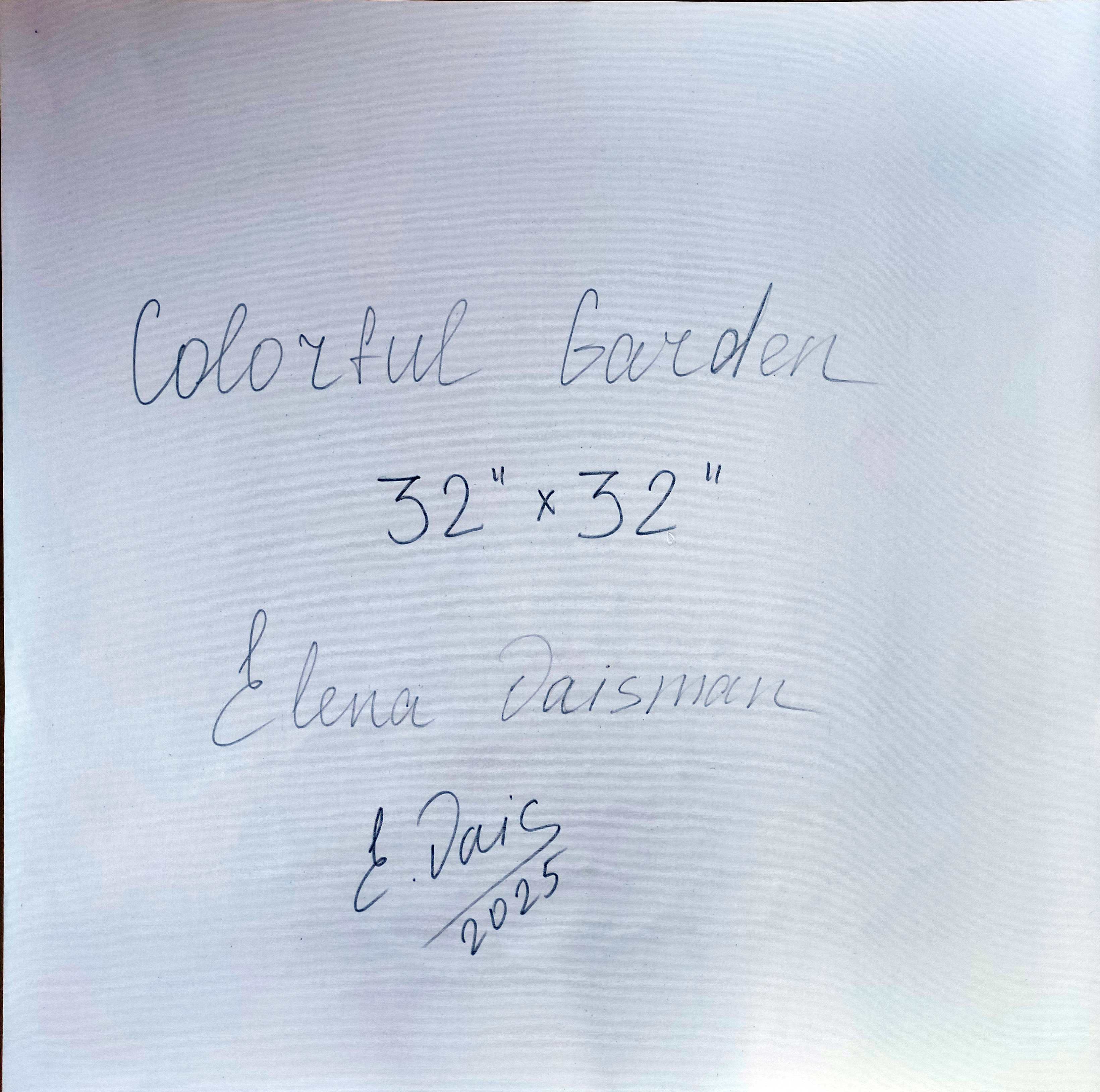 2025 "Colorful Garden" 32" x 32" acrylic archival ink painting on canvas. Signed by artist, Elena Vaisman. Date and signed on the back. Please refer to photos for more details on the condition of the item.