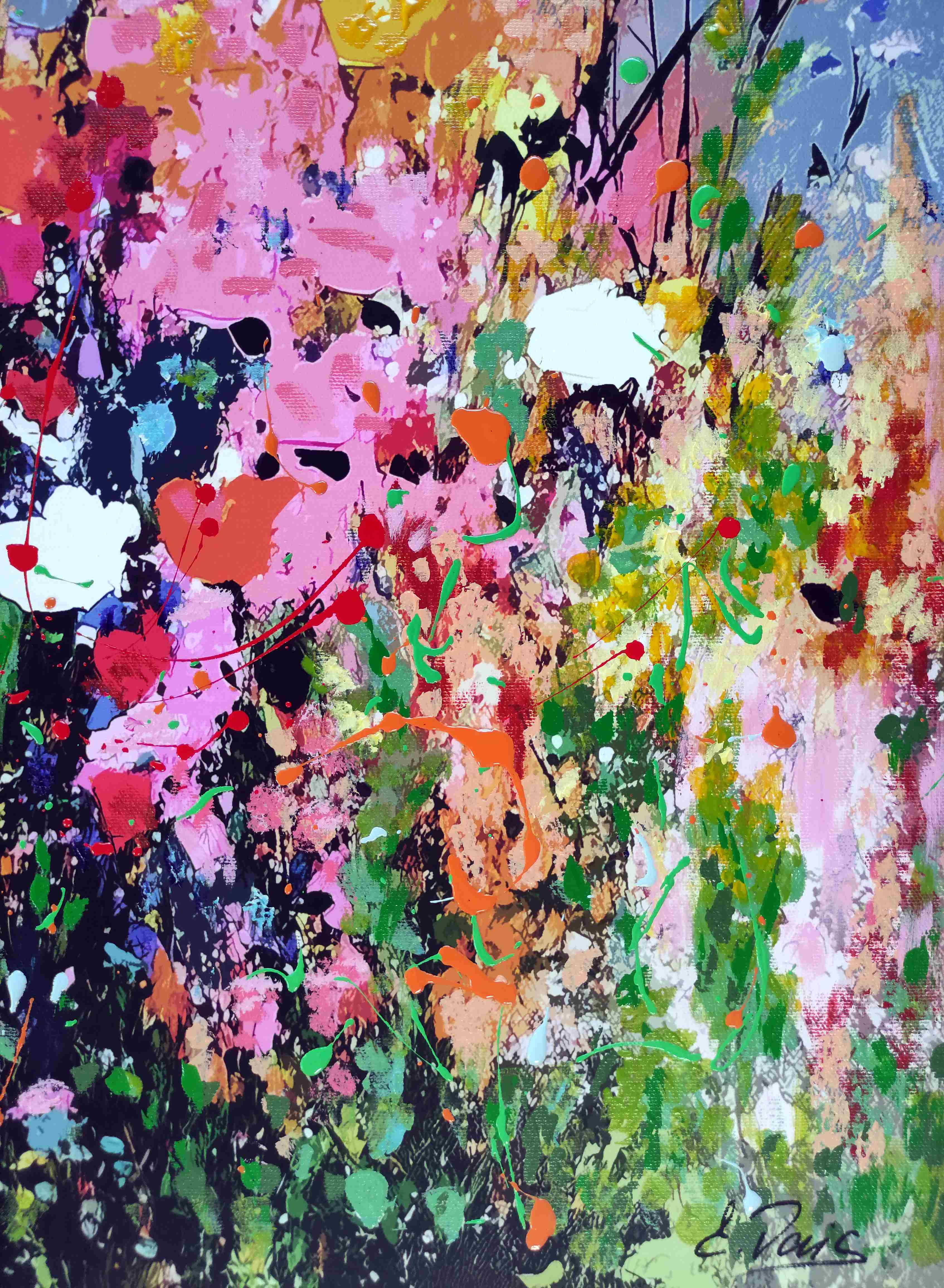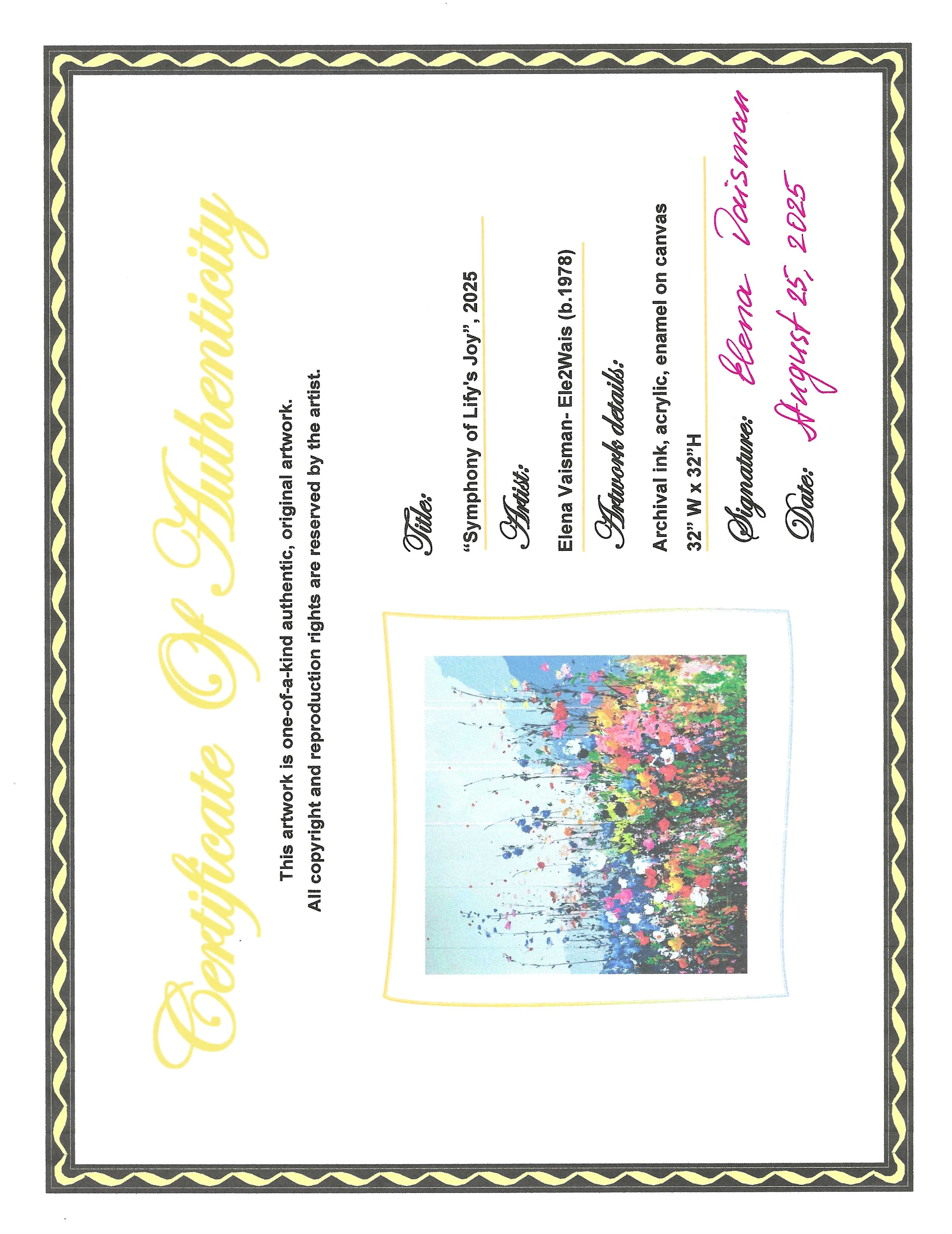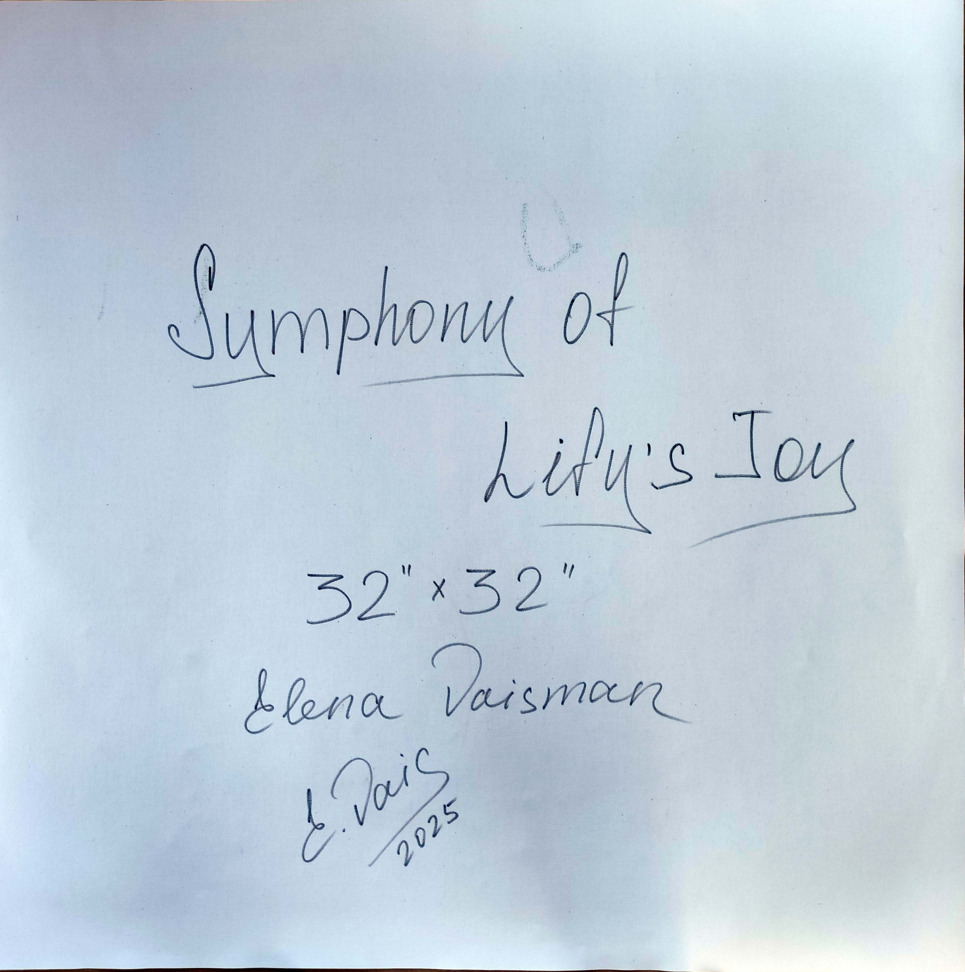 2025 "Symphony of Lify's Joy" 32" x 32" acrylic archival ink painting on canvas. Signed by artist, Elena Vaisman. Date and signed on the back. Please refer to photos for more details on the condition of the item.