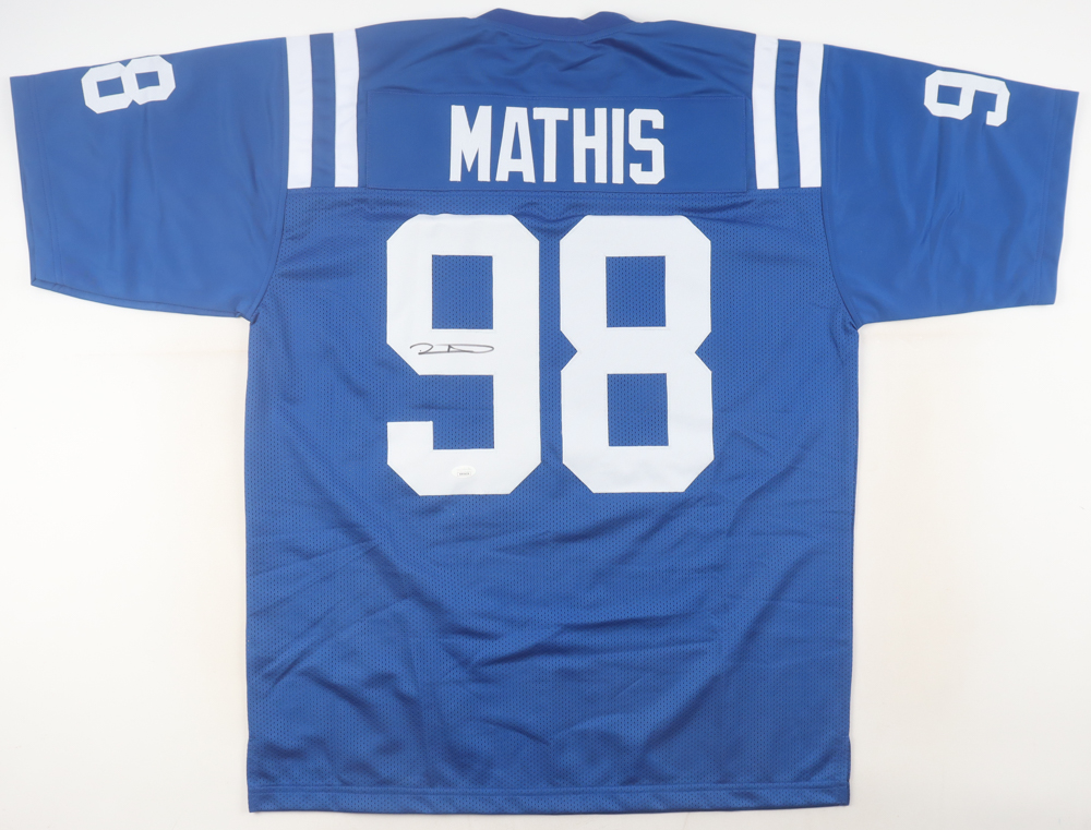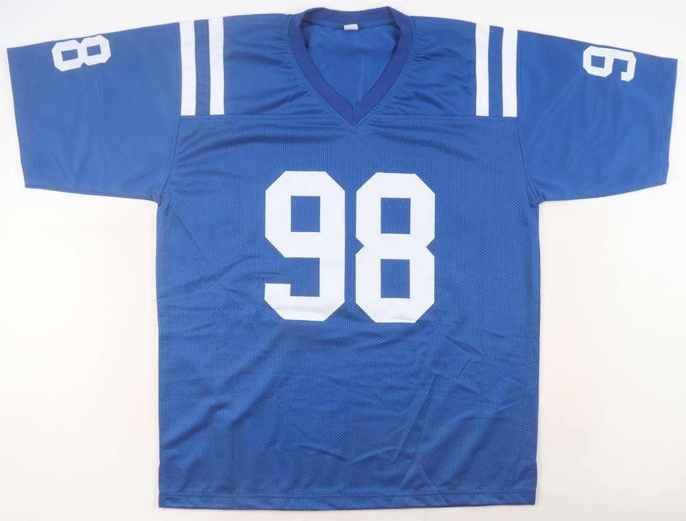 Custom jersey with everything sewn on, size XL. Hand-signed by Robert Mathis (Indianapolis Colts).