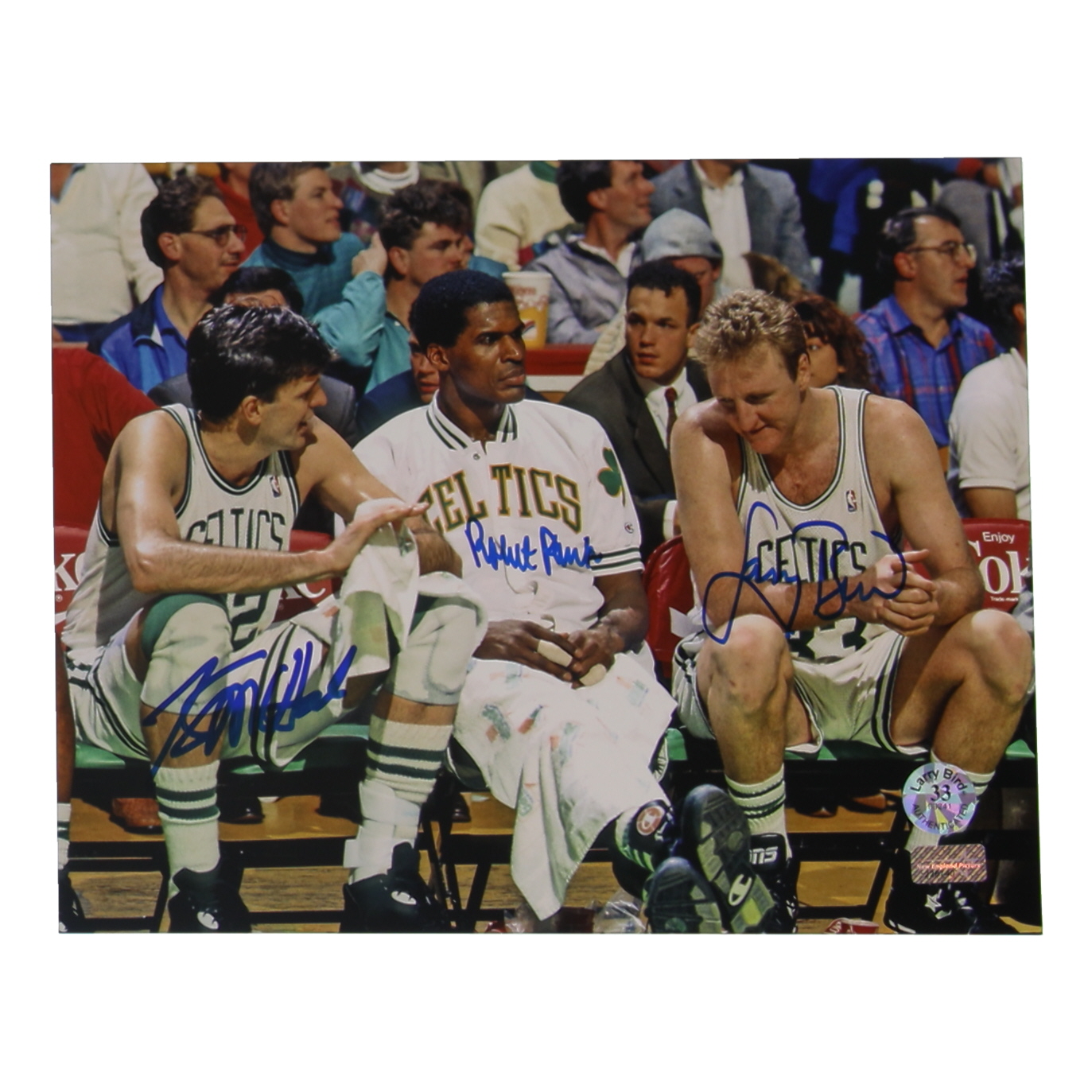 Photo measures 8" x 10" in size. Hand-signed by Larry Bird (HOF), Robert Parish (HOF) and Kevin McHale (Boston Celtics, HOF).
