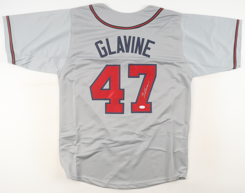 Custom jersey with everything sewn on, size XL. Hand-signed by Tom Glavine (Atlanta Braves, HOF).
