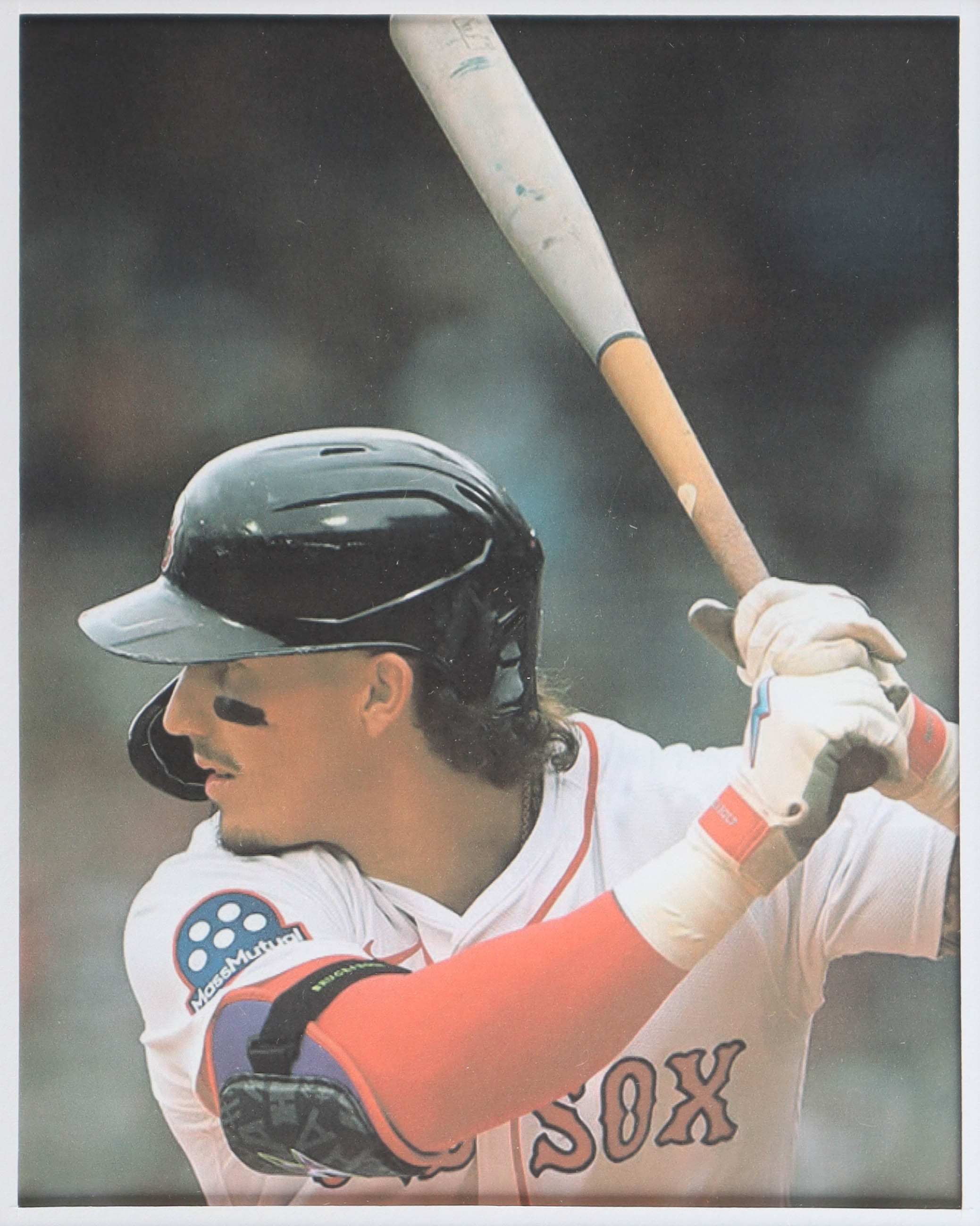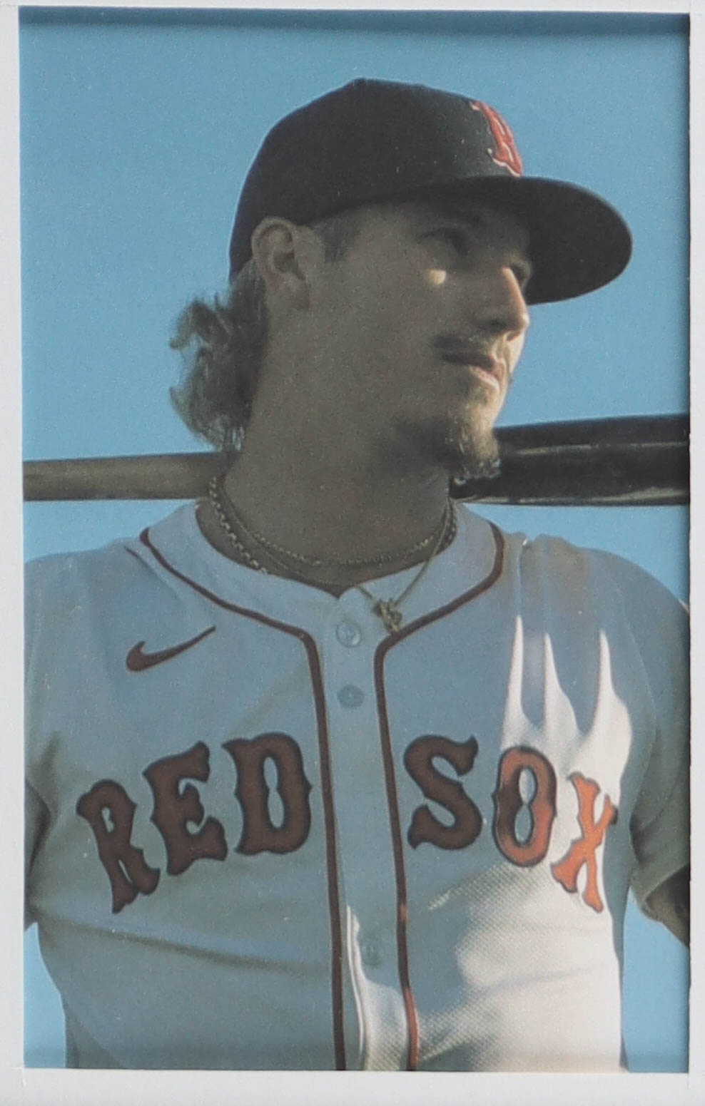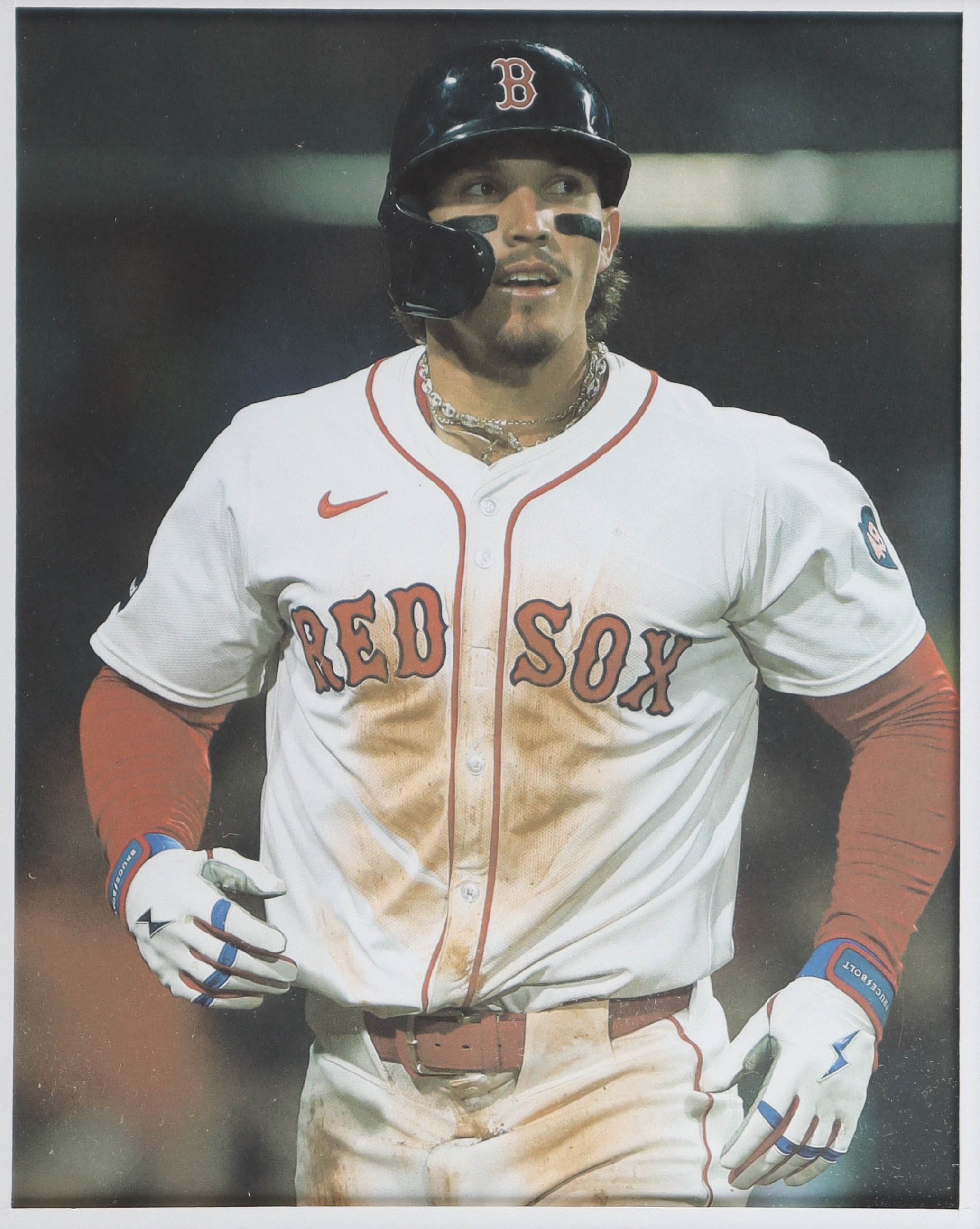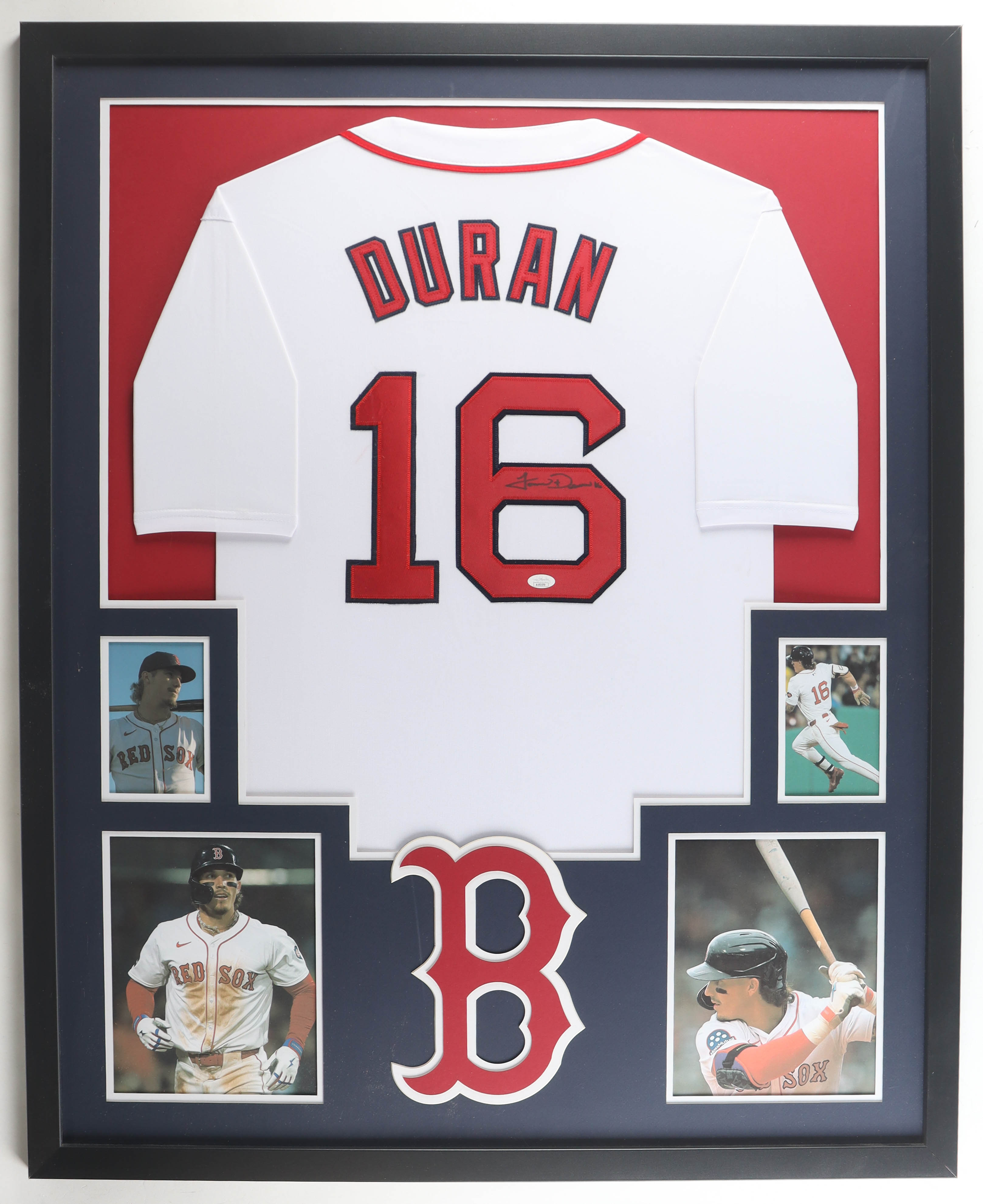Custom frame measures 34" x 42" in size. Jersey has been hand-signed by Jarren Duran (Boston Red Sox). Display also includes (4) unsigned 8" x 10" photographs and a team patch.