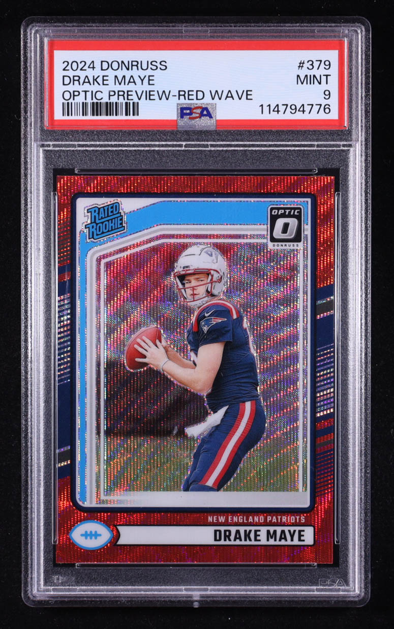 Drake Maye 2024 Donruss Optic Rated Rookies Preview Red Wave #379 RC (PSA 9)