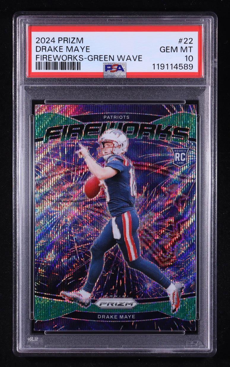 Drake Maye 2024 Prizm Fireworks Green Wave #22 RC (PSA 10)
