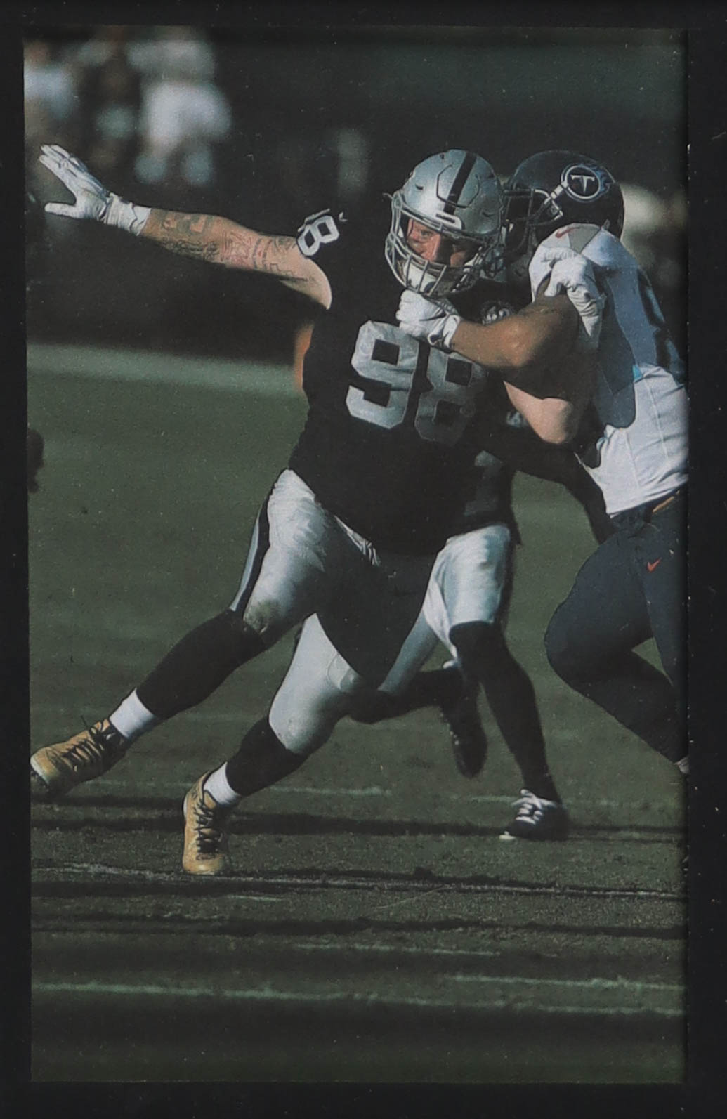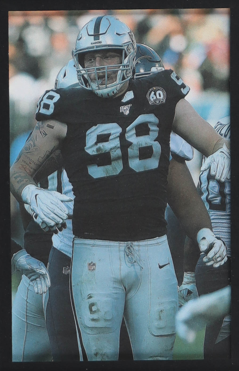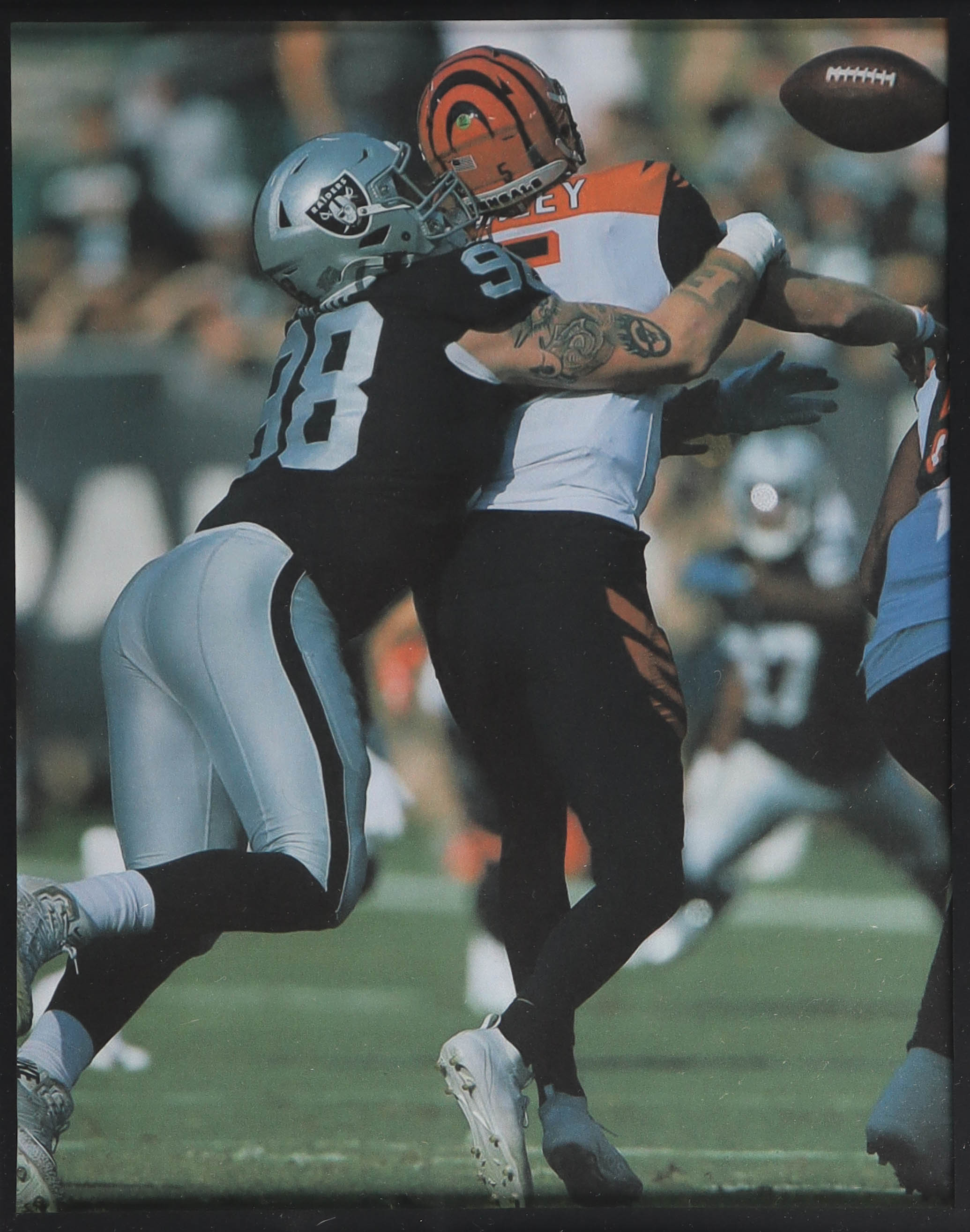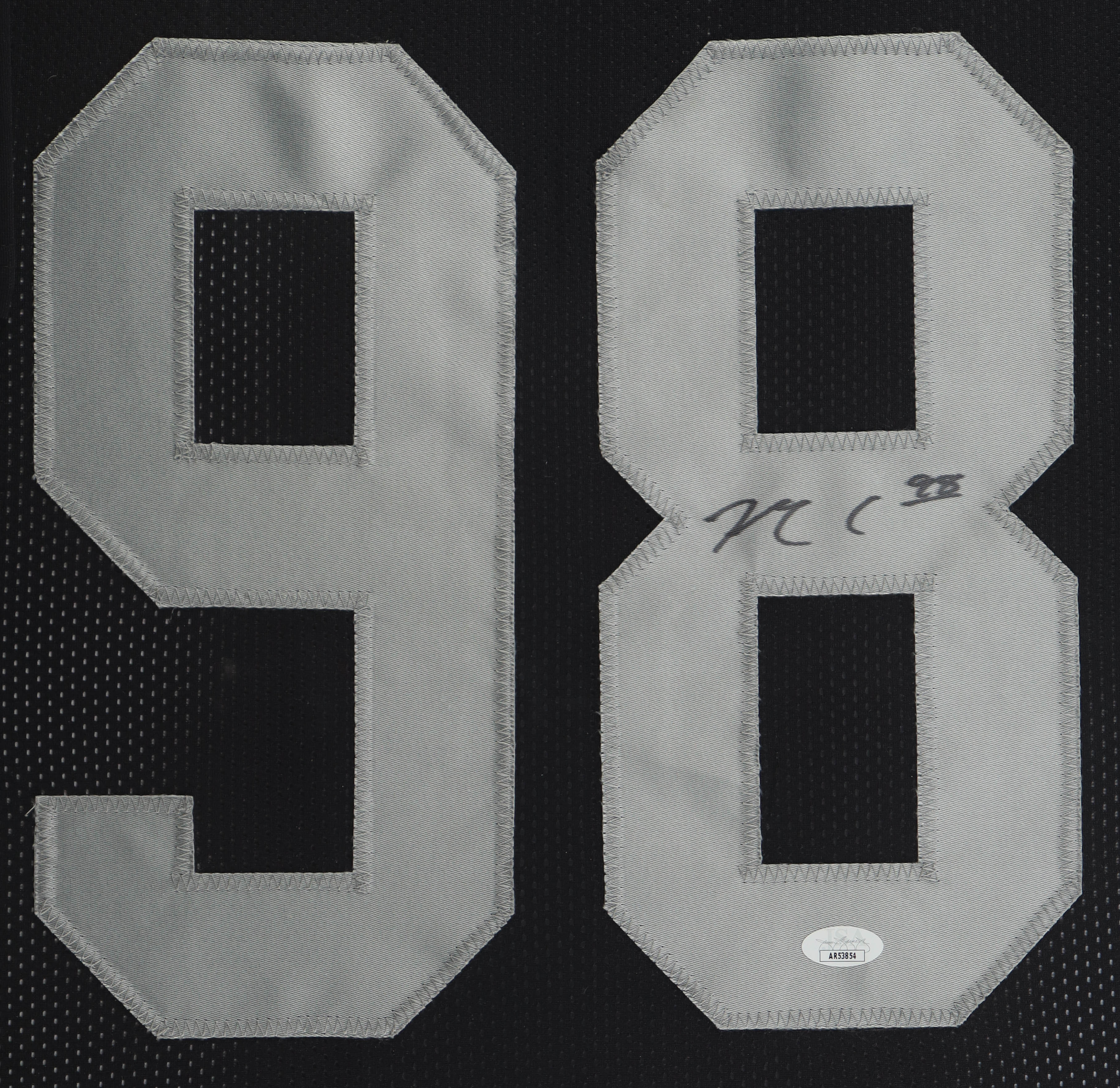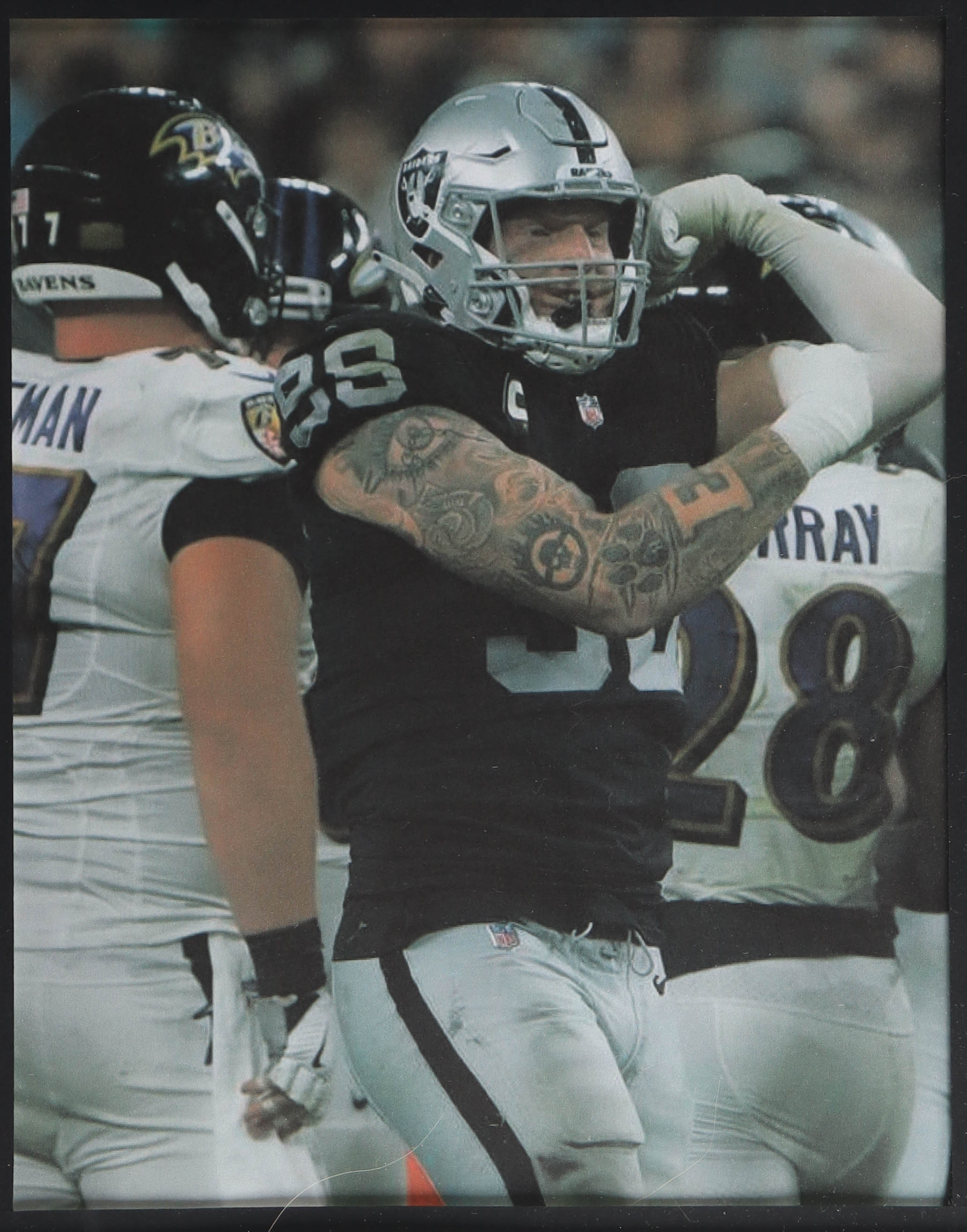 Custom frame measures 34" x 42" in size. Jersey has been hand-signed by Max Crosby (Las Vegas Raiders). Display also includes (4) unsigned photographs and a team logo patch.