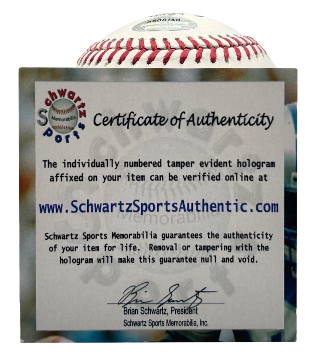 The autograph includes an official Schwartz Sports Hologram and matching COA for authenticity purposes.