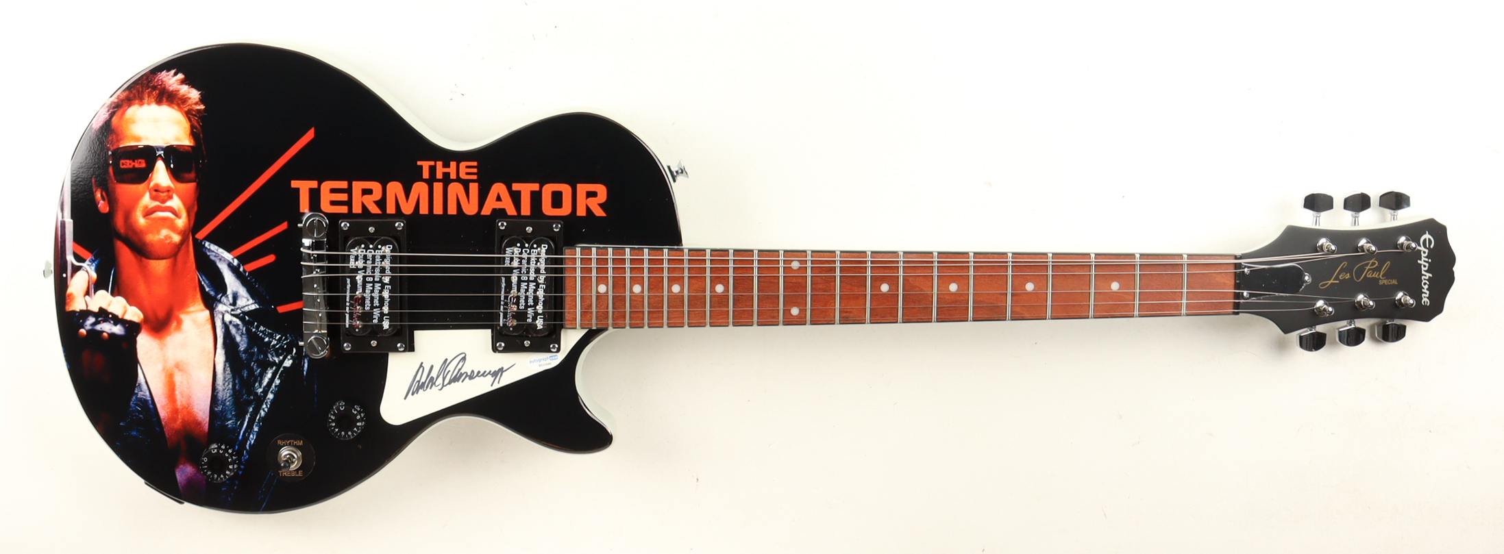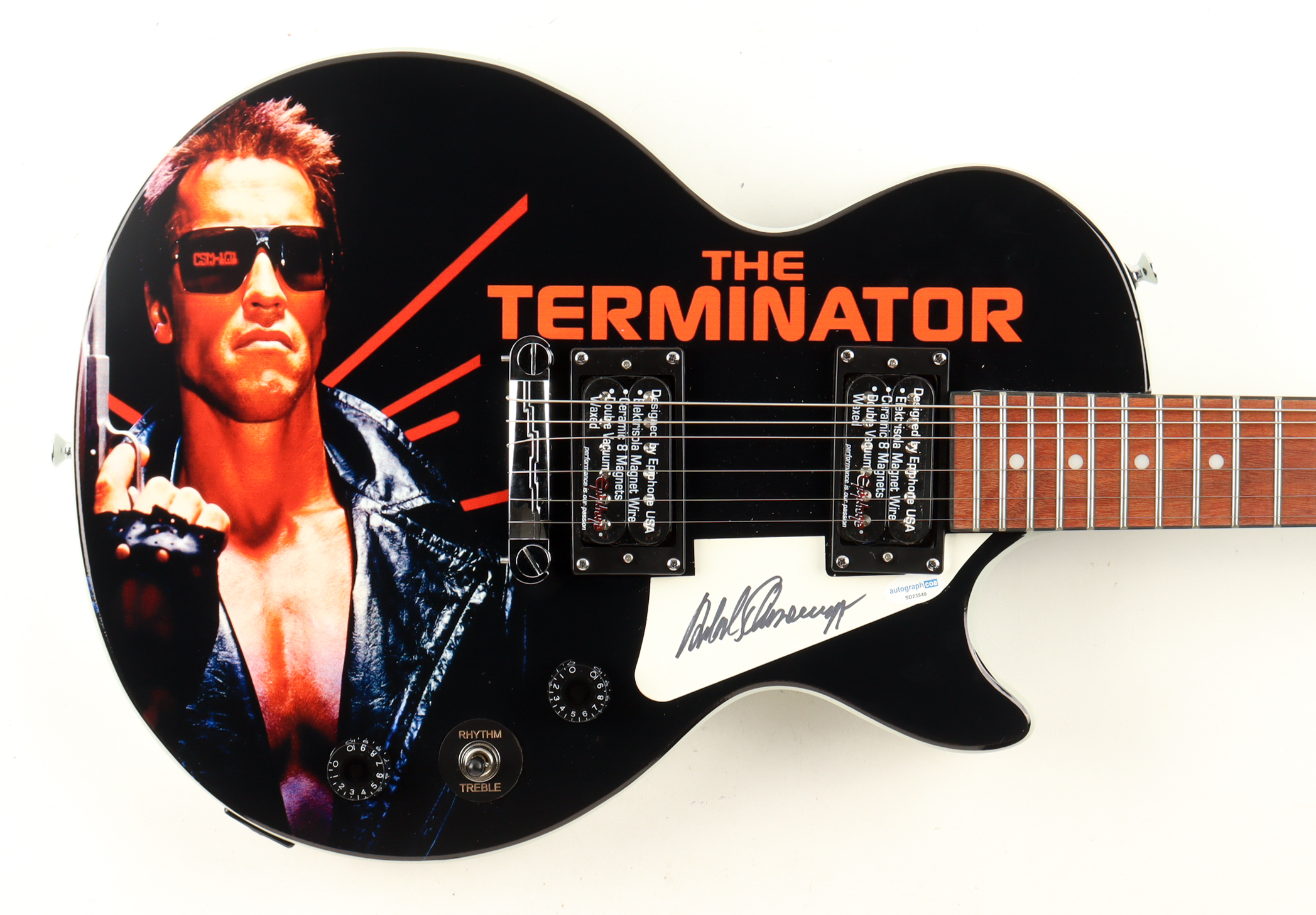 Custom Electric Guitar has been hand-signed on the pick-guard by Arnold Schwarzenegger (Terminator).
