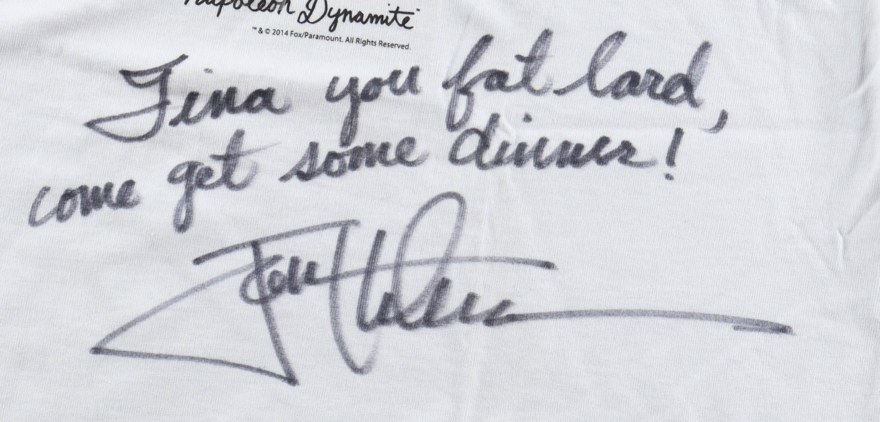 Jon Heder Signed "Vote For Pedro" T-Shirt Inscribed "Tina You Fat Lard Come Get Some Dinner!" (DA)