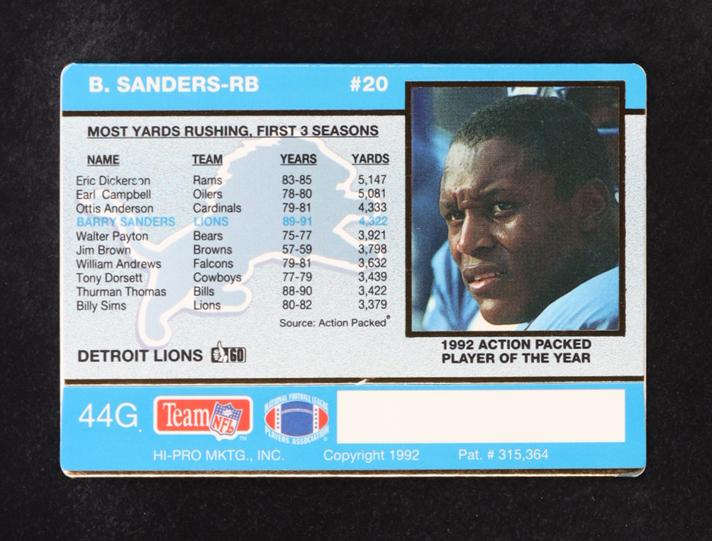 Barry Sanders 1992 Action Packed #44G 24K Gold