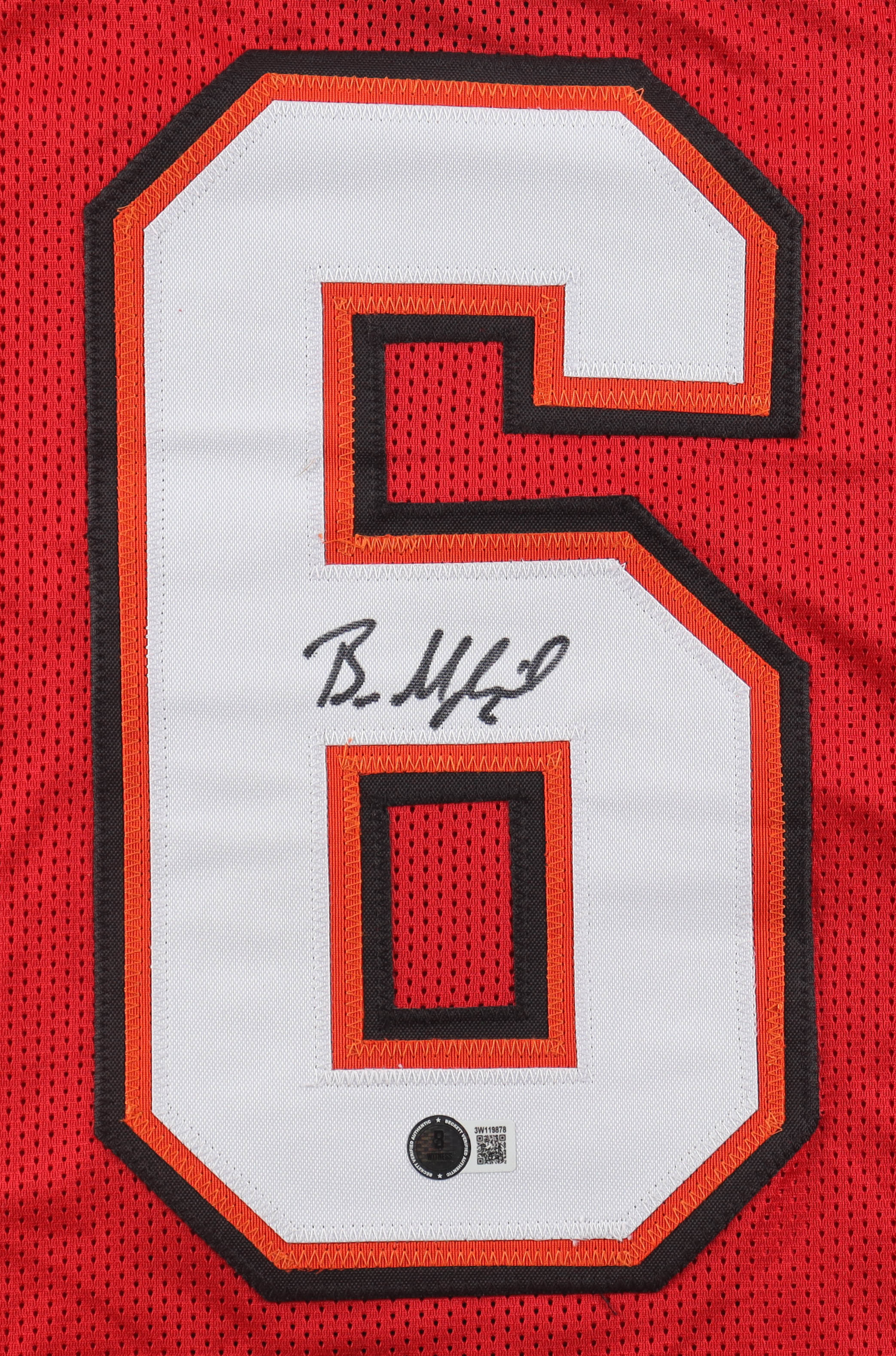 Custom jersey with everything sewn on, size XL. Hand-signed by Baker Mayfield (Tampa Bay Buccaneers).