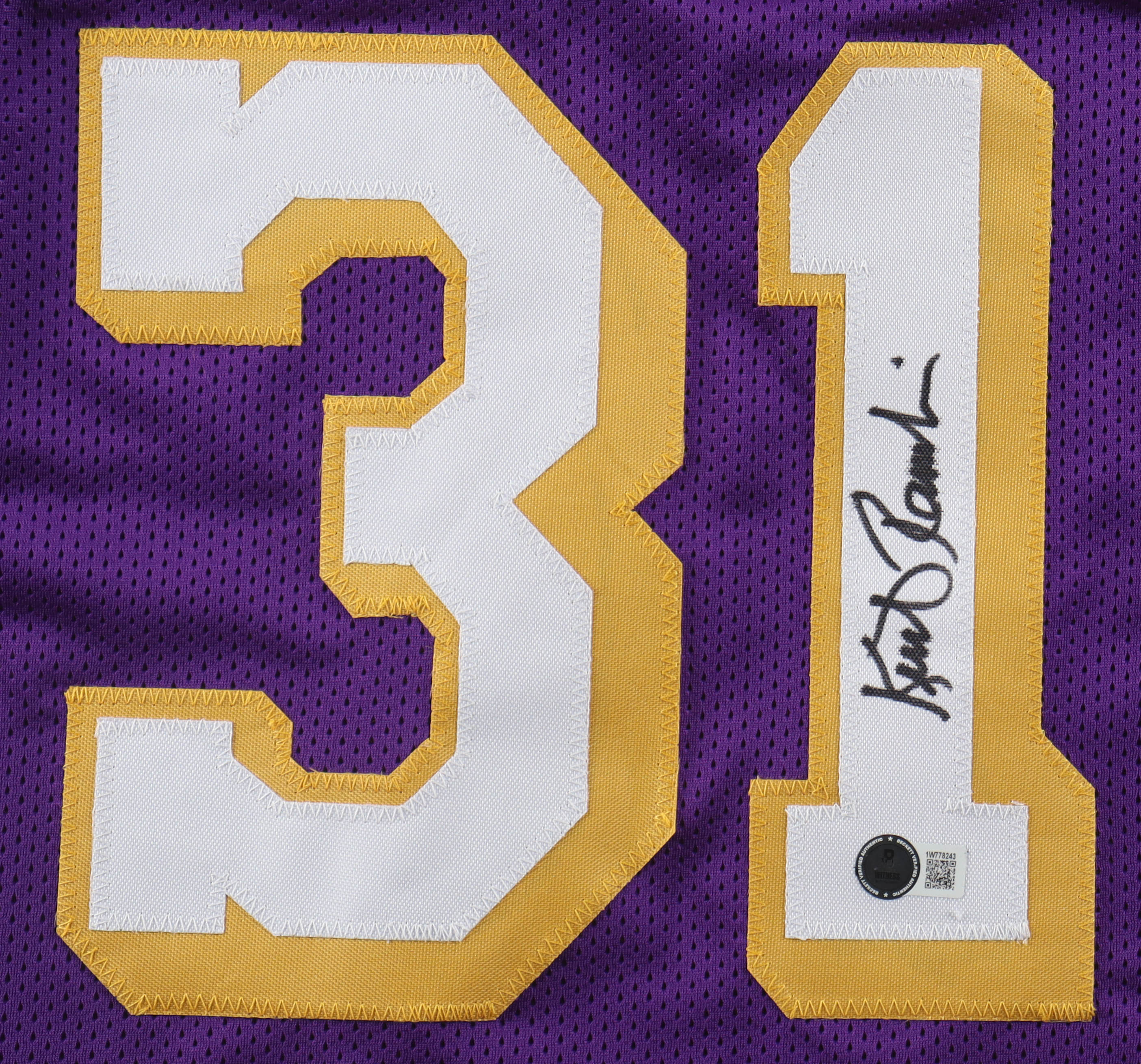 Custom jersey with everything sewn on, size XL. Hand-signed by Kurt Rambis (Los Angeles Lakers).