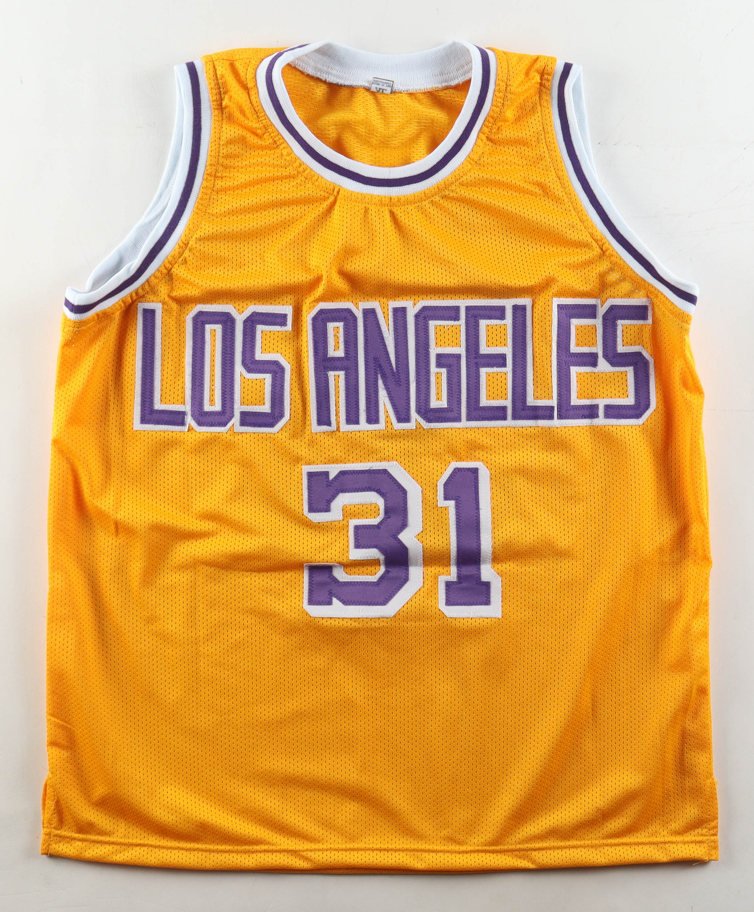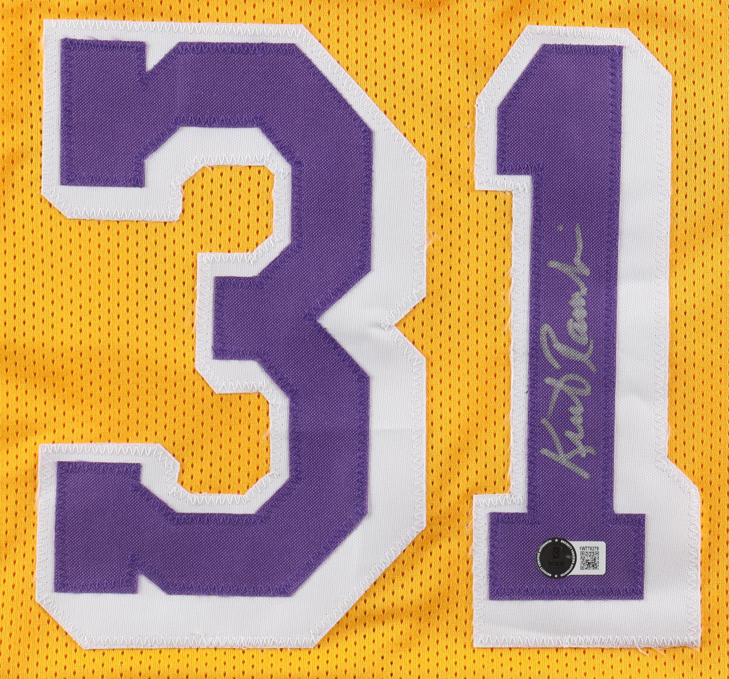 Custom jersey with everything sewn on, size XL. Hand-signed by Kurt Rambis (Los Angeles Lakers).
