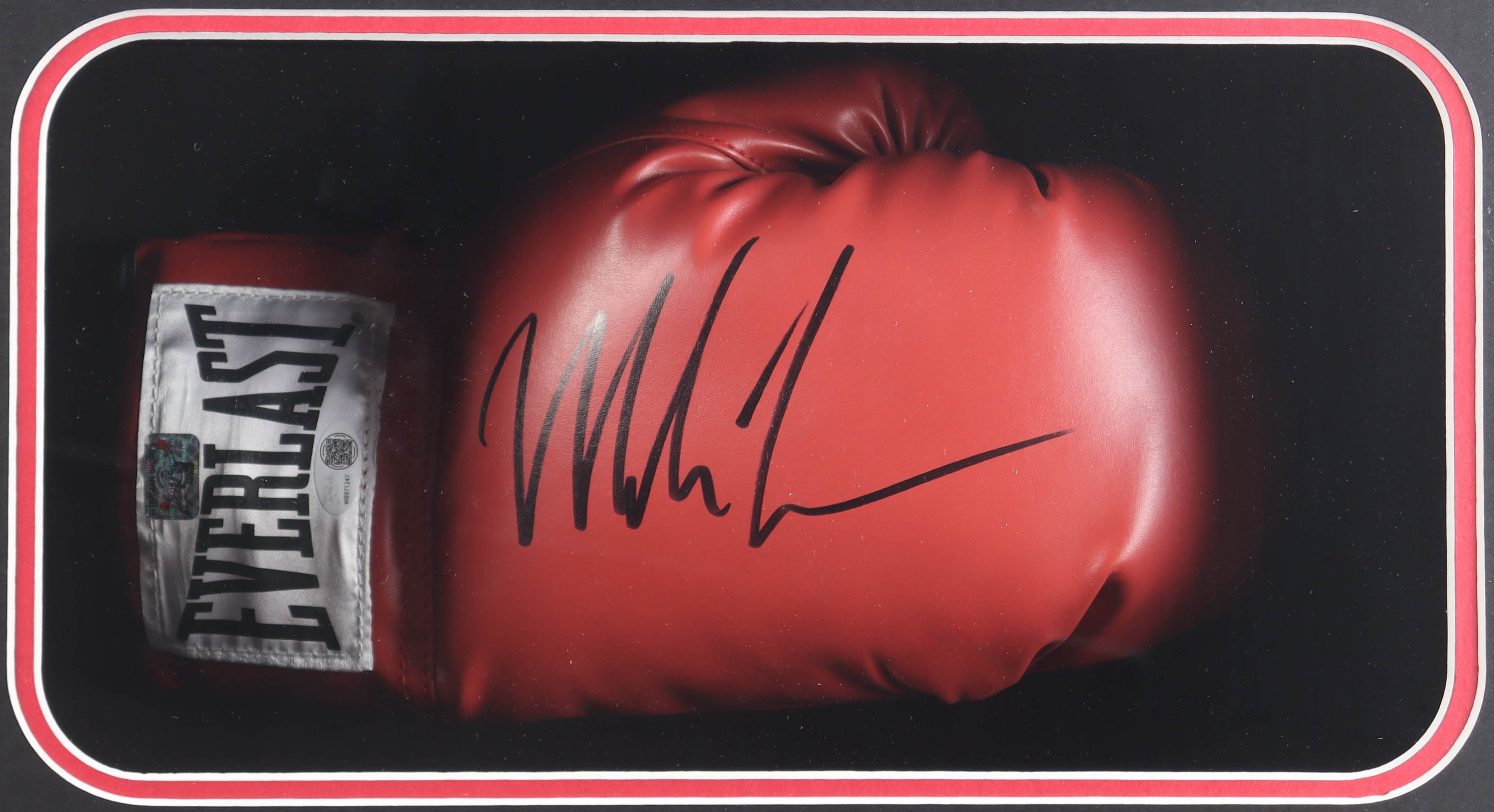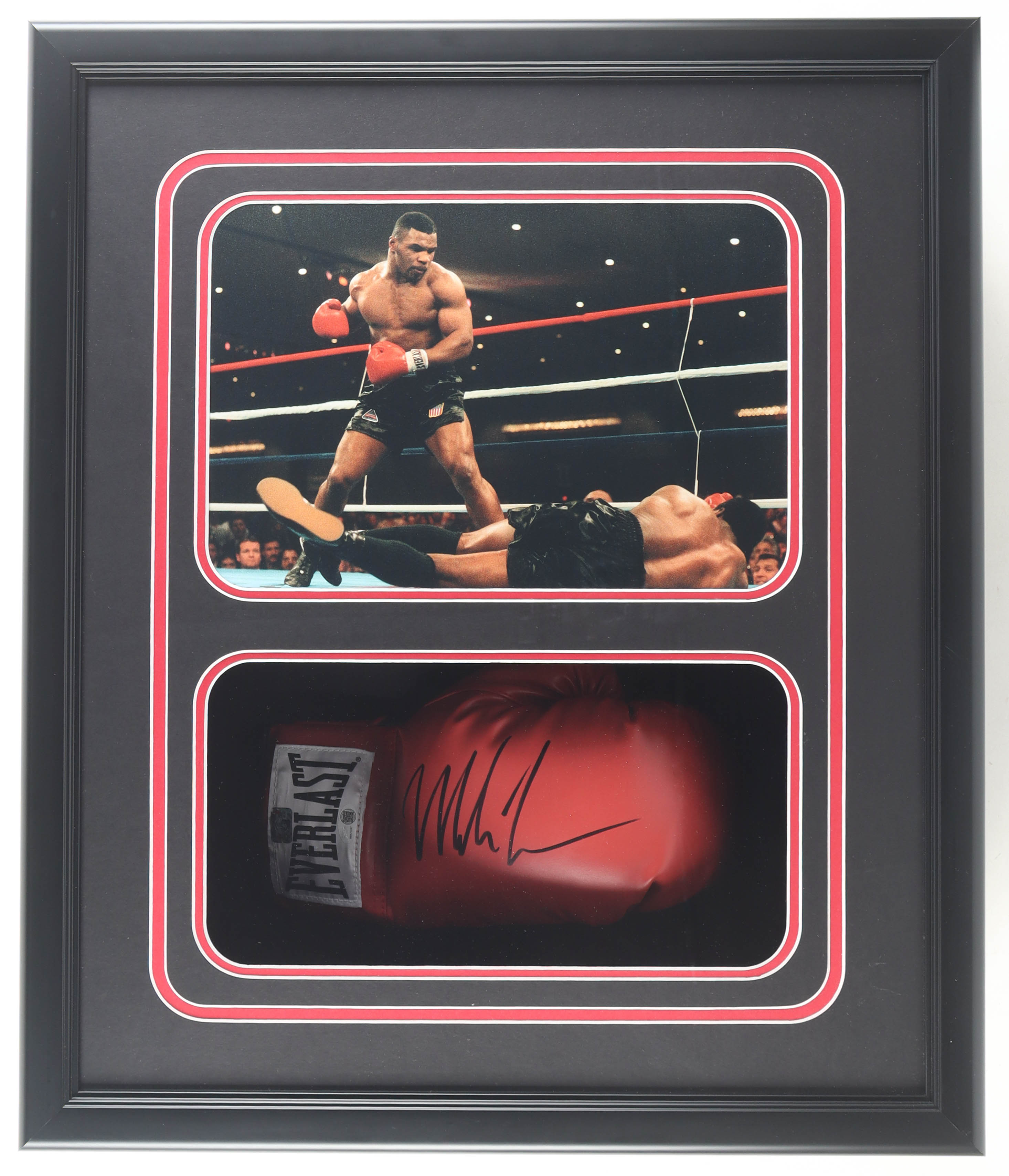 Shadowbox measures approximately 22.5" x 26.5" x 6.5" in size and features an Everlast boxing glove that has been hand-signed by Mike Tyson (HOF).