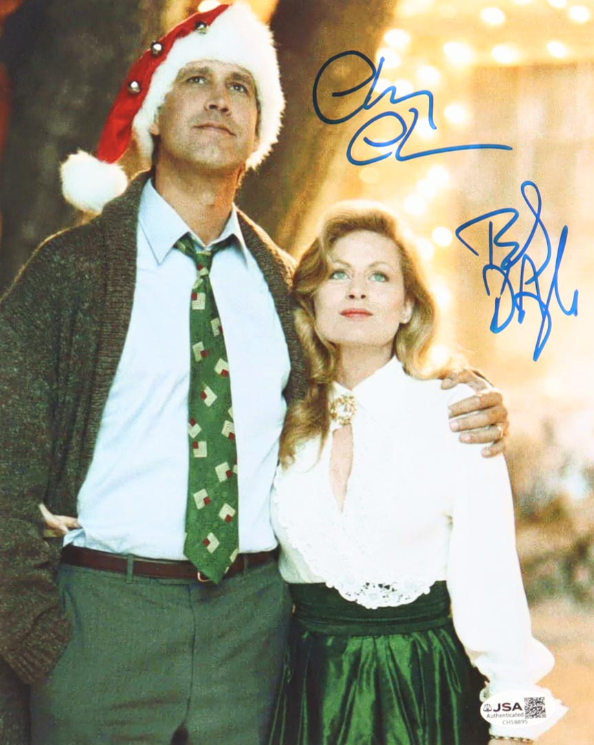 Photo measures 8" x 10" in size and has been hand-signed by Chevy Chase (Clark Griswold) and Beverly D'Angelo (Ellen Griswold).