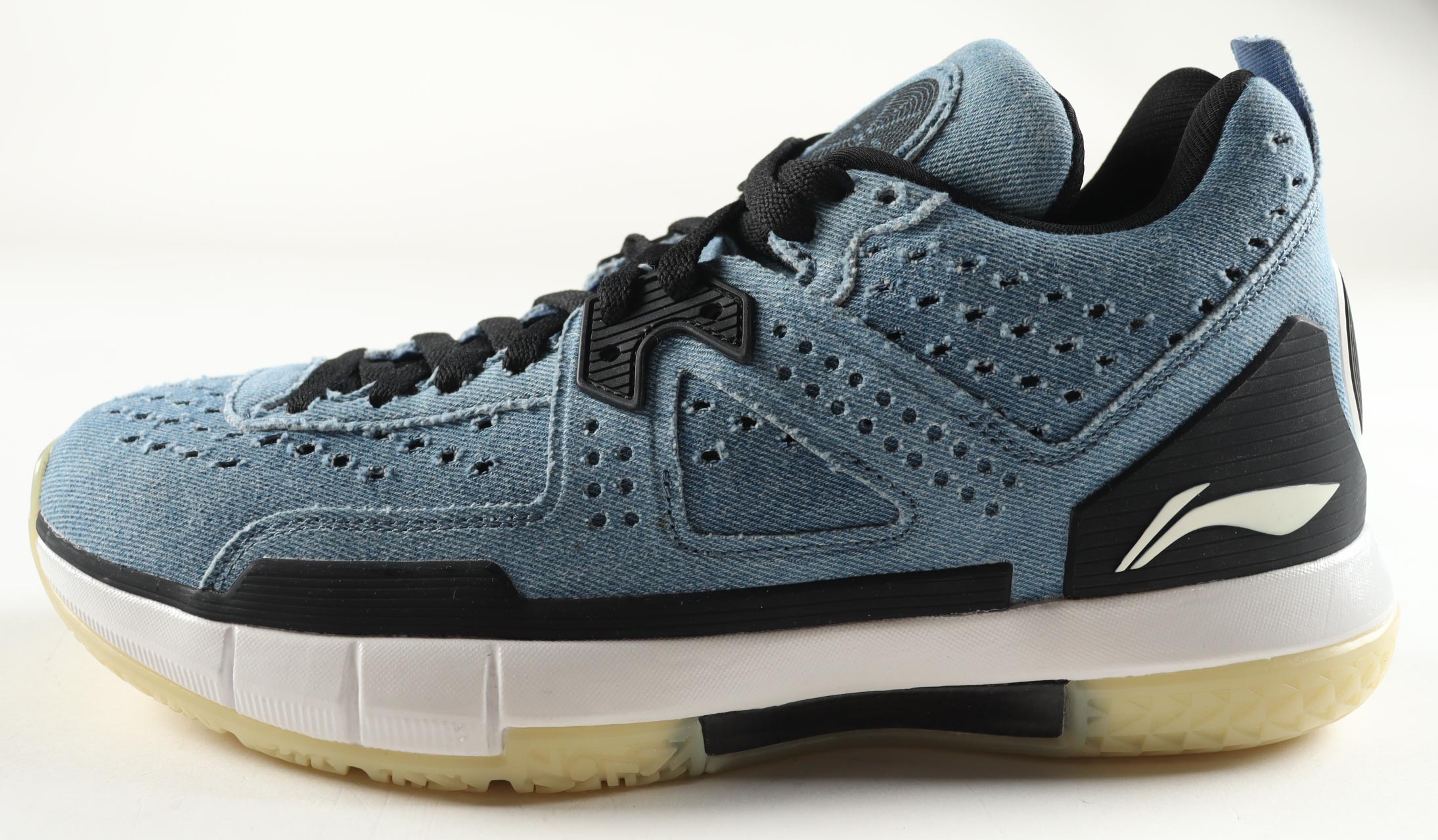 Li-Ning Way of Wade 5 'Denim' basketball shoe, size 9.5. The shoe has been hand-signed by Dwyane Wade (Miami Heat). Please note the signature is smudged, see photos for more details.