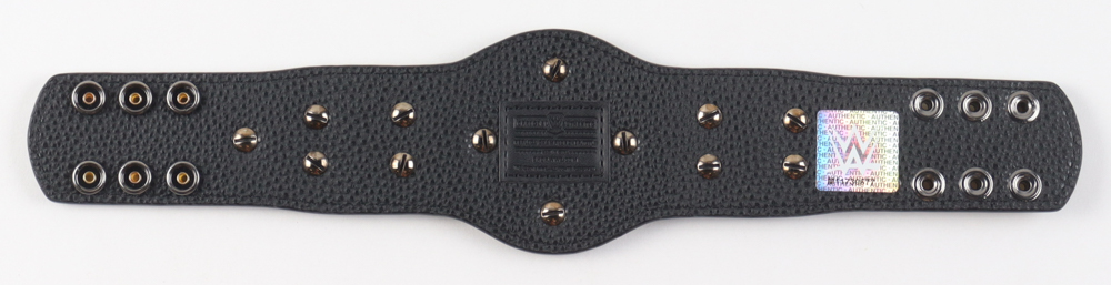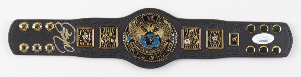 WWE attitude era championship mini replica title belt measures approximately 3"x13" in length and has been hand-signed by Mick Foley (HOF).