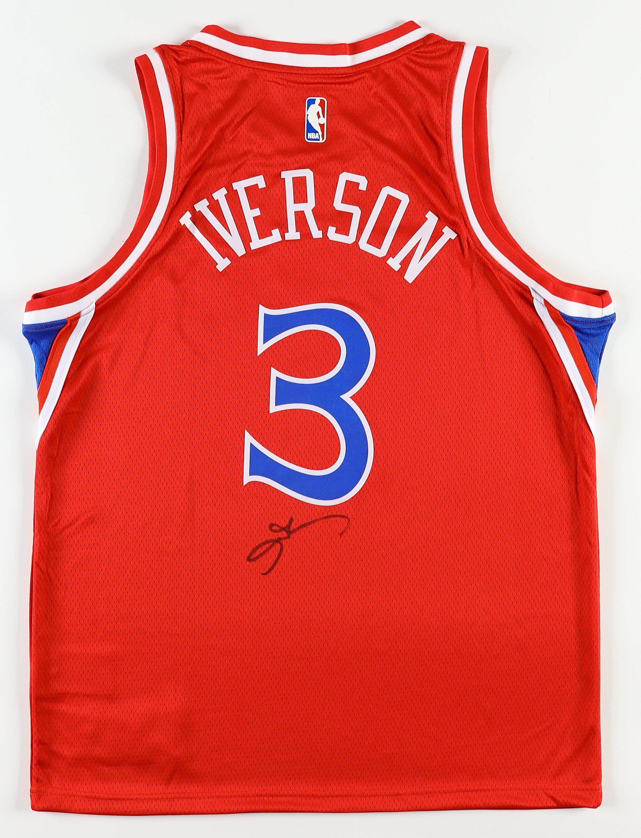 Nike authentic jersey with everything pressed on, size L (48). Hand-signed by Allen Iverson (HOF).