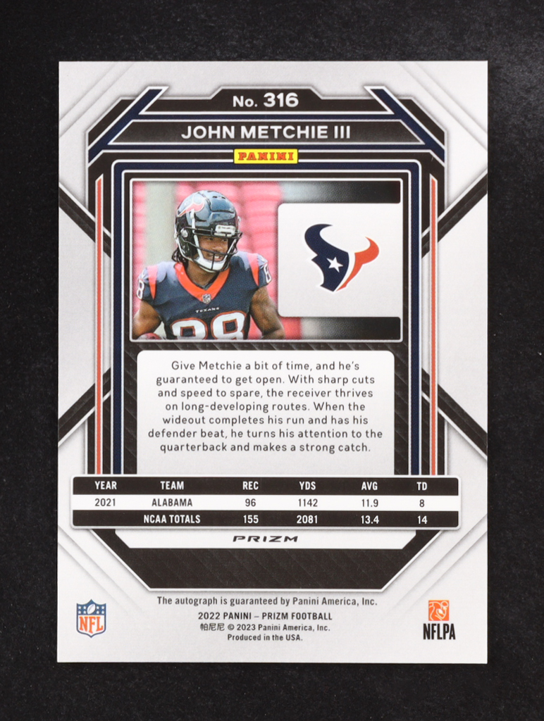 John Metchie III 2022 Panini Prizm Autographs Prizms No Huddle #316 RC