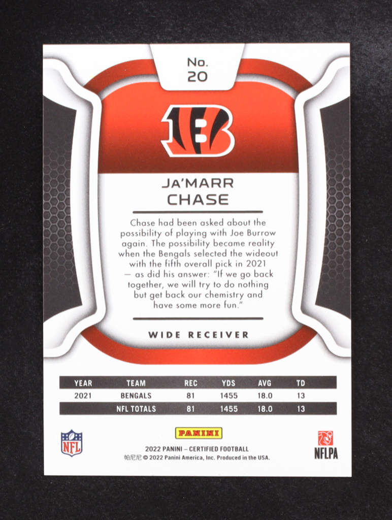 Ja'Marr Chase 2022 Certified Mirror Bronze #20 #065/275 RC