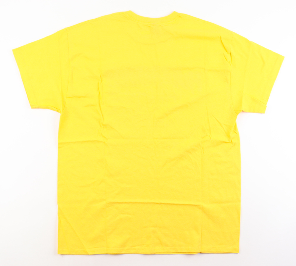 Gildan T-shirt with everything printed on, size XL. Hand-signed by Hulk Hogan (D. 2025, HOF).