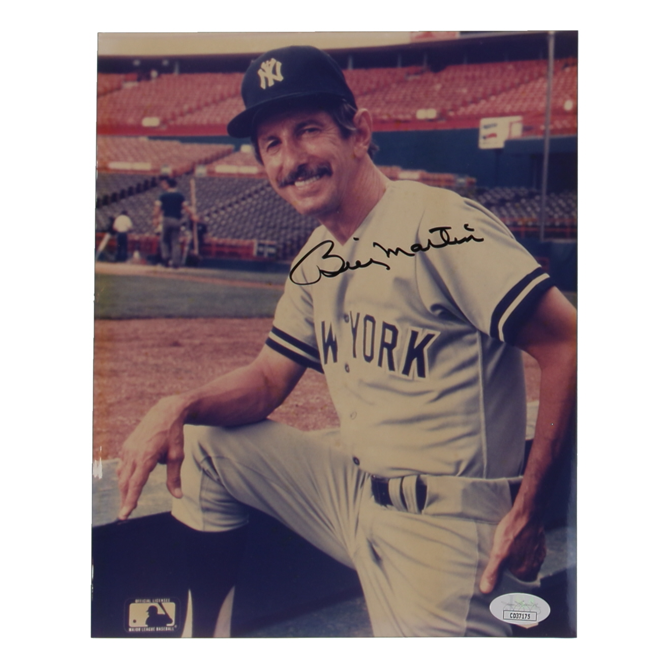 Photo measures approximately 8" x 10" in size and has been hand-signed by Billy Martin (D. 1989, New York Yankees).