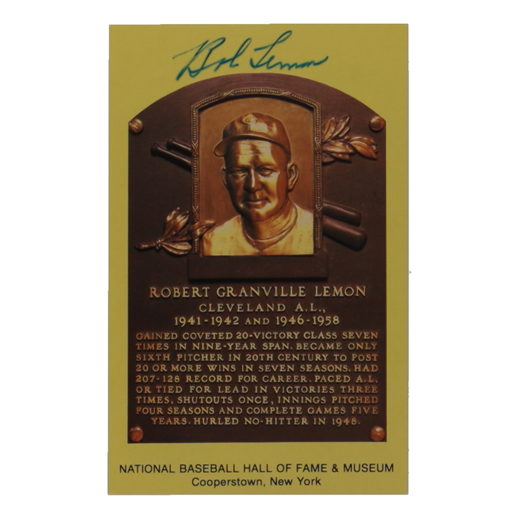 Bob Lemon Signed Hall of Fame Plaque Postcard (JSA)