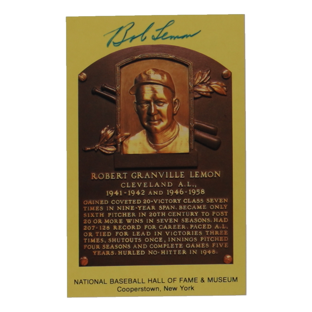 Bob Lemon Signed Hall of Fame Plaque Postcard (JSA)
