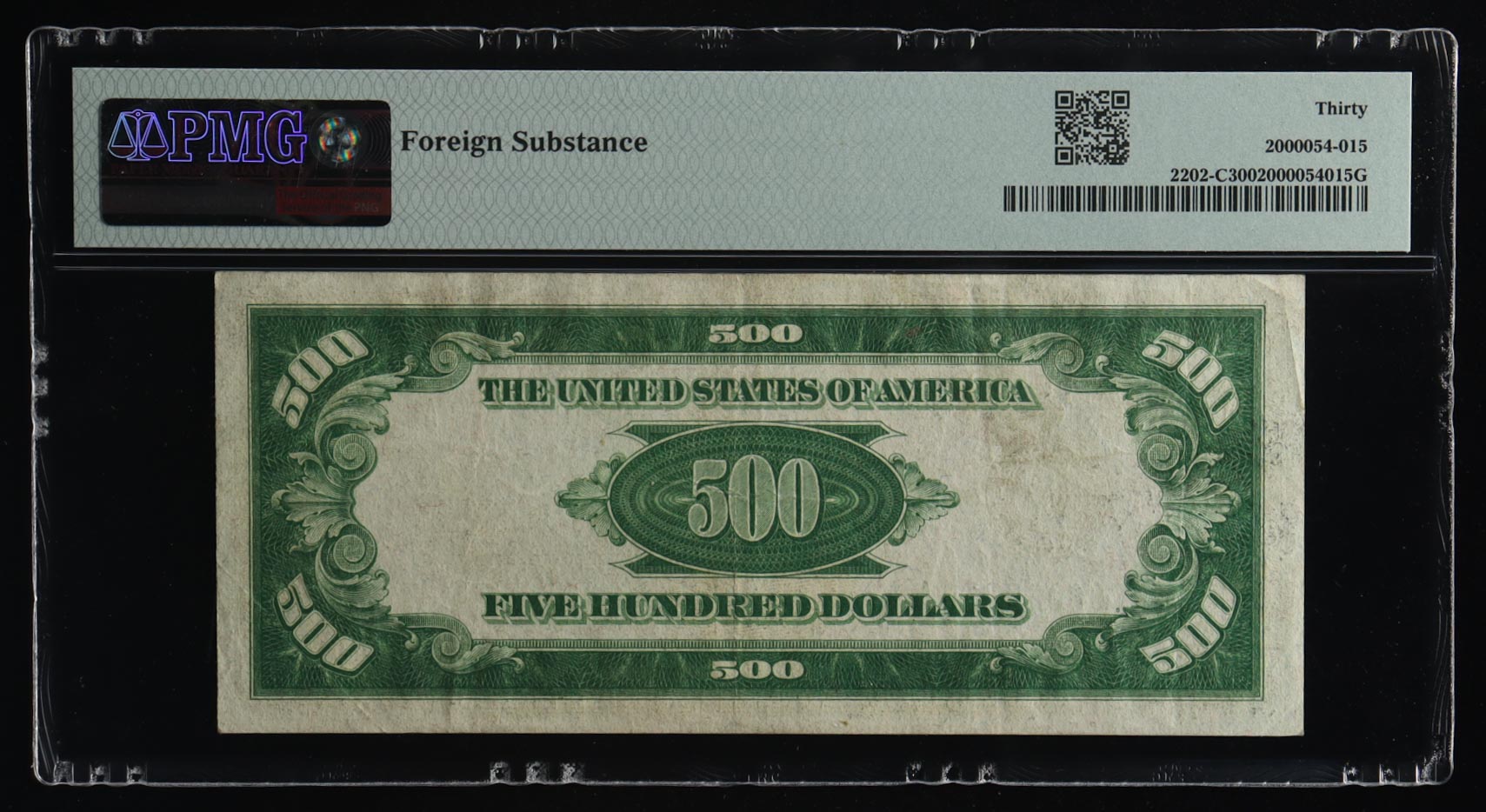 1934-A U.S. $500 Five-Hundred Dollars Federal Reserve Note - Philadelphia (PMG VF 30)