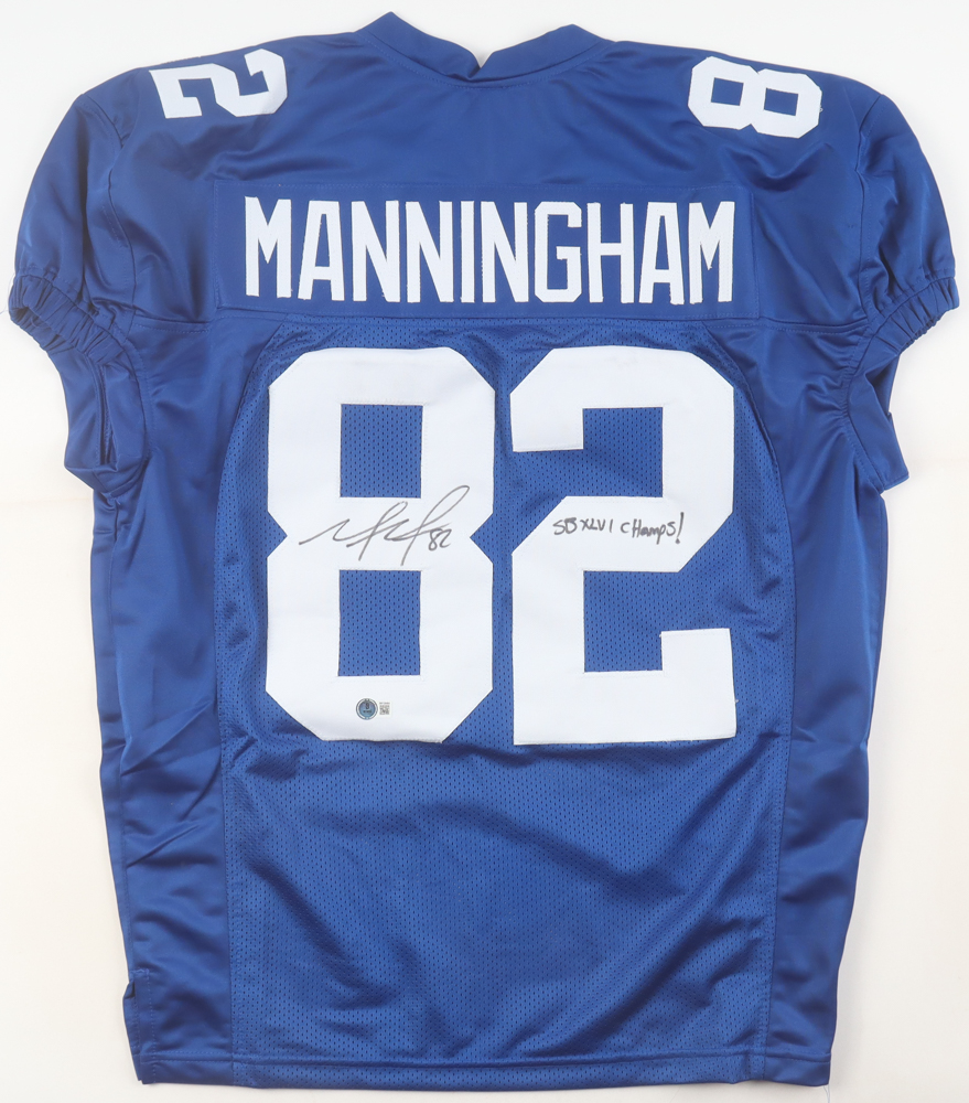 Custom jersey with everything sewn on, size XL. Hand-signed by Mario Manningham (New York Giants).
