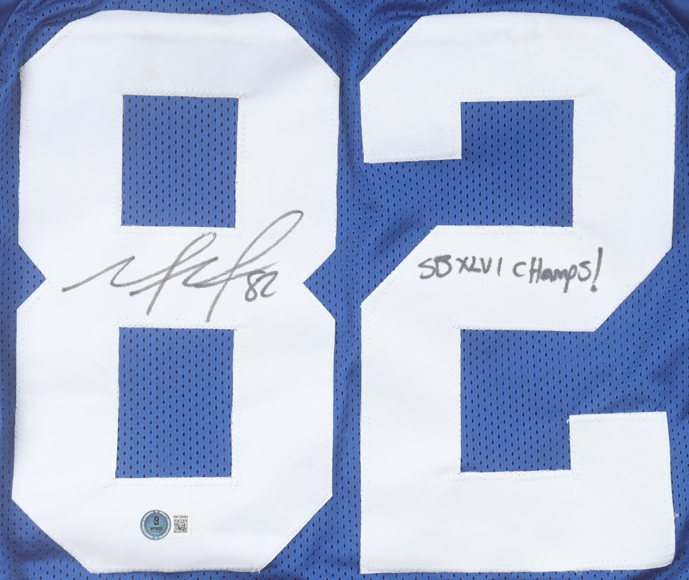Mario Manningham Signed Jersey Inscribed "SB XLVI Champs!" (Beckett)
