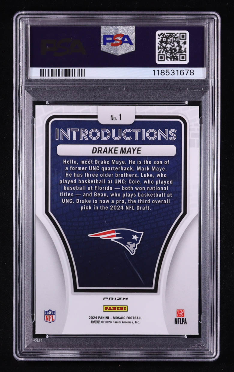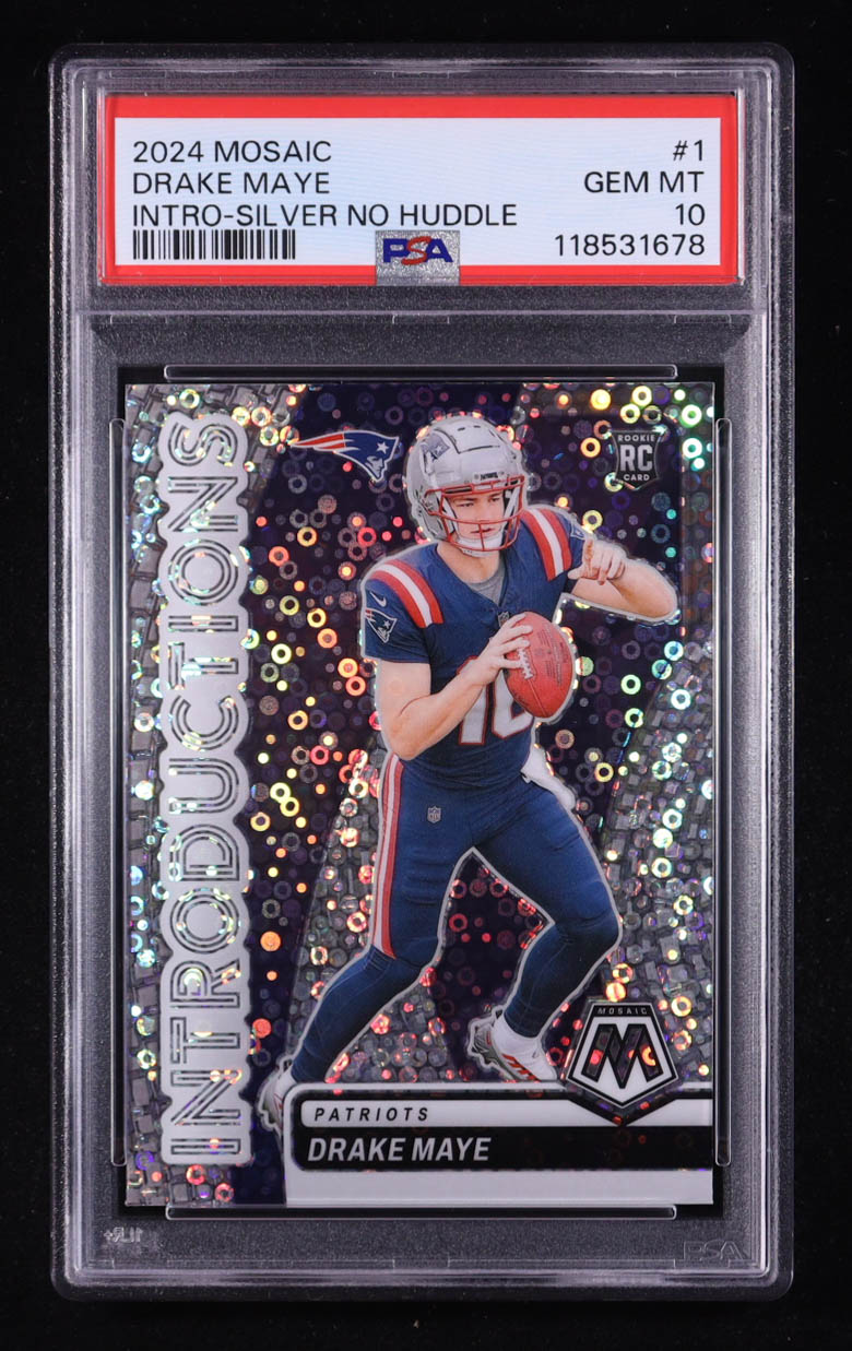 Drake Maye 2024 Panini Mosaic Introductions No Huddle Silver #1 RC (PSA 10)