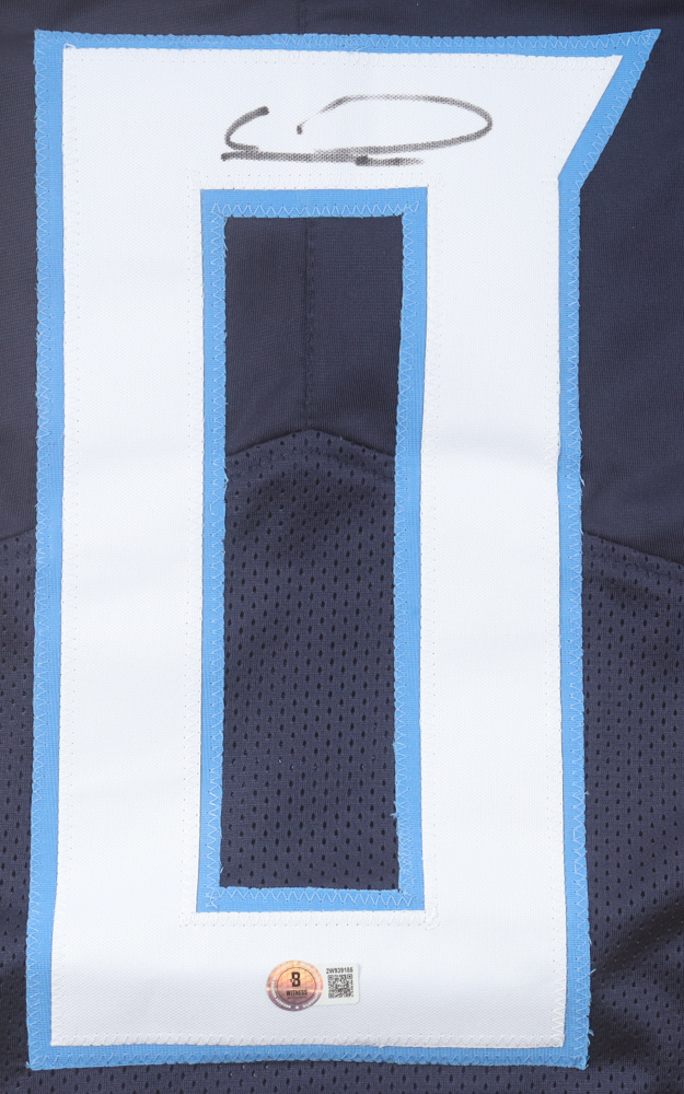 Custom jersey with everything sewn on, size XL. Hand-signed by Calvin Ridley (Tennessee Titans).