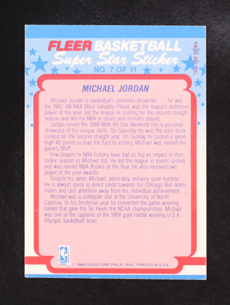 Michael Jordan 1988-89 Fleer Stickers #7