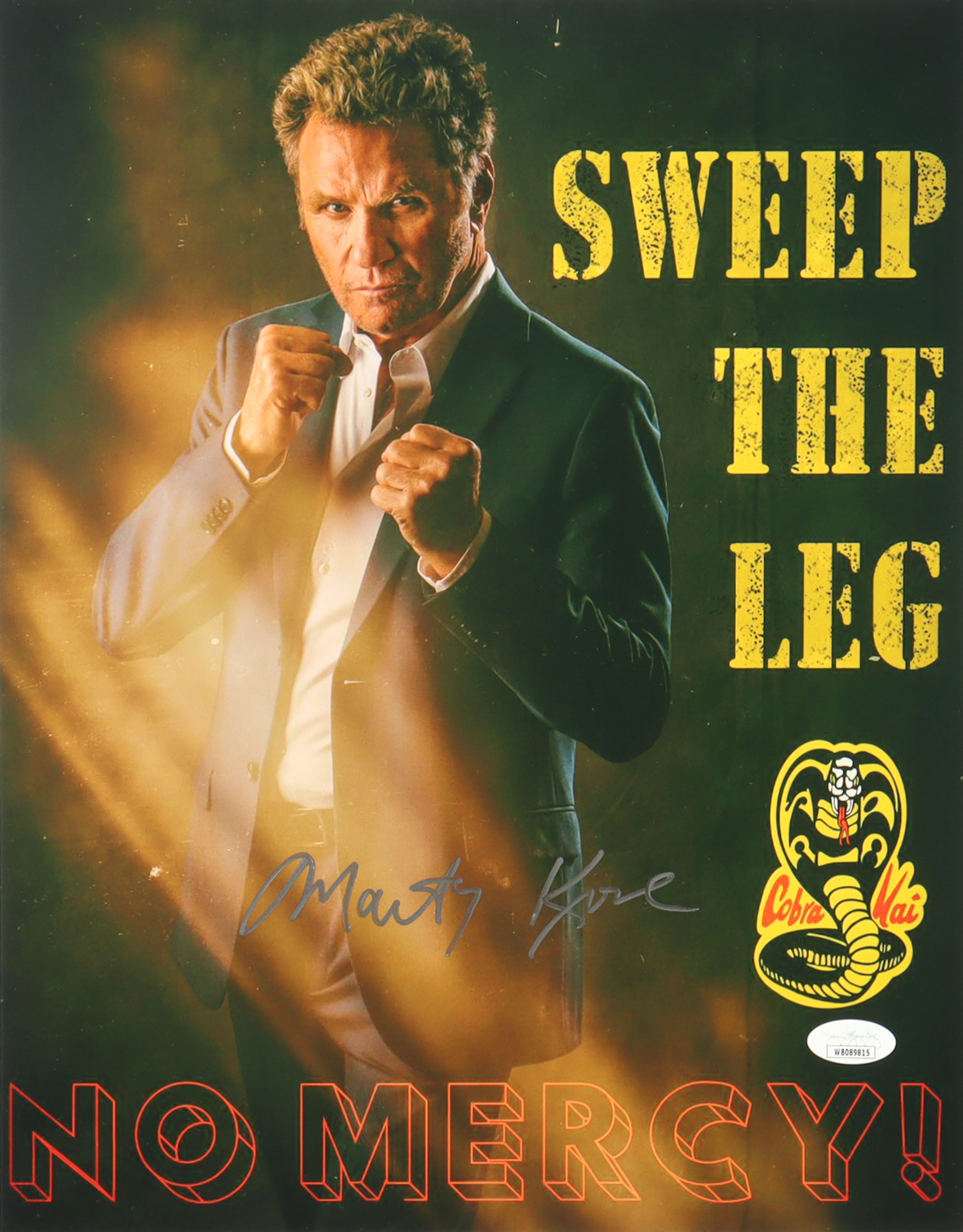 Photograph measures 11" x 14" in size and has been hand-signed by Martin Kove.