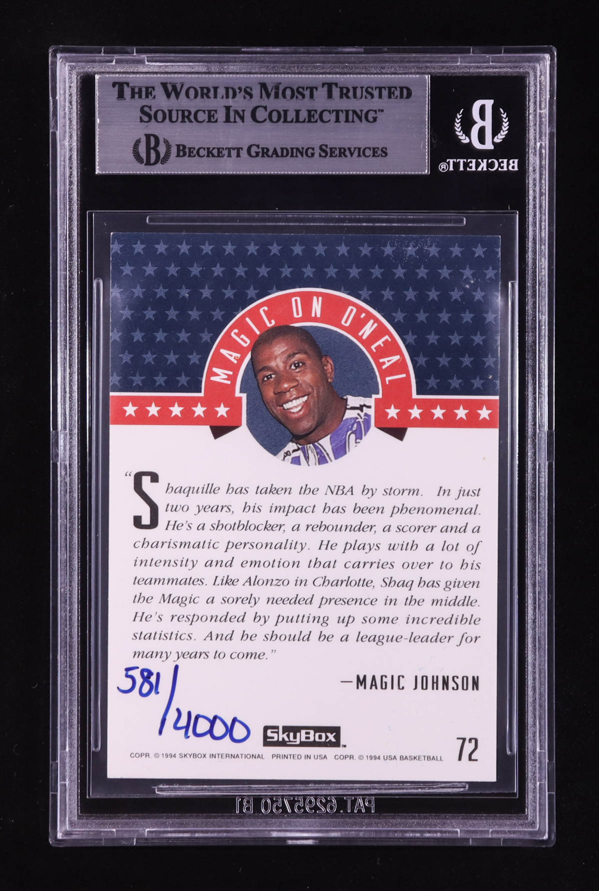 Shaquille O'Neal Signed LE 1994 SkyBox USA #72 Magic On (BGS)