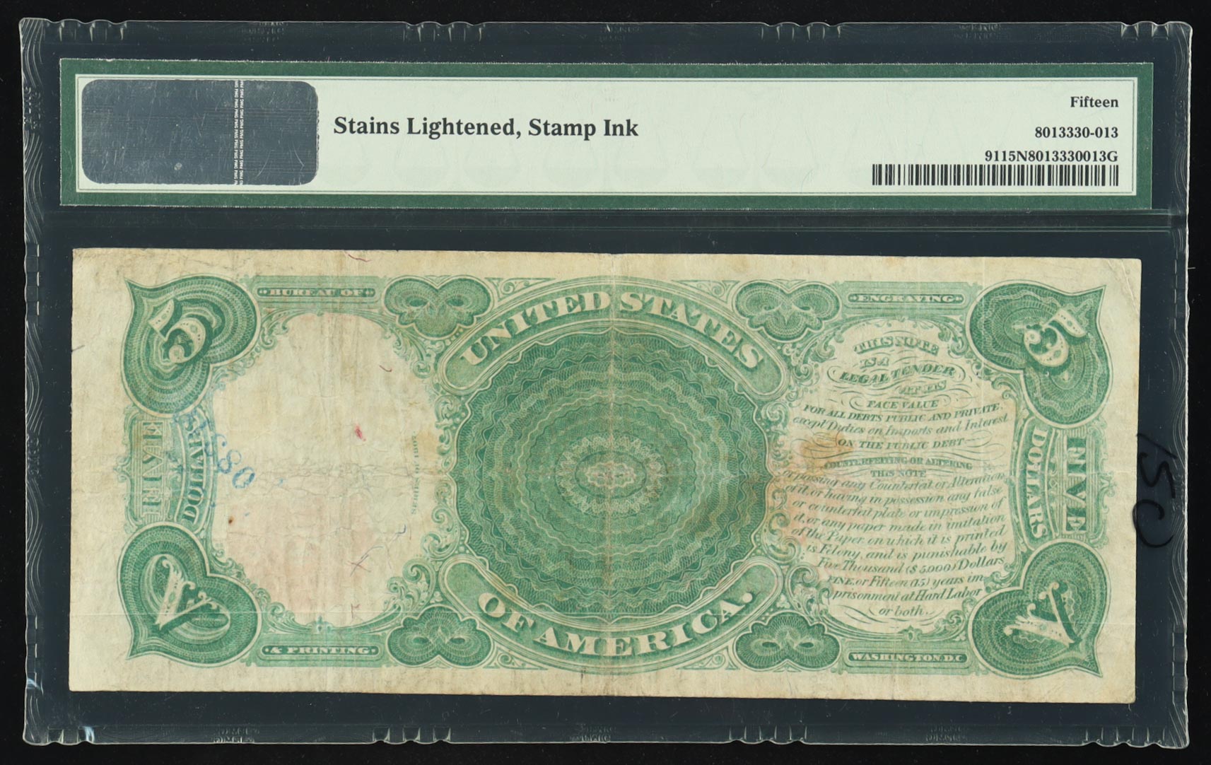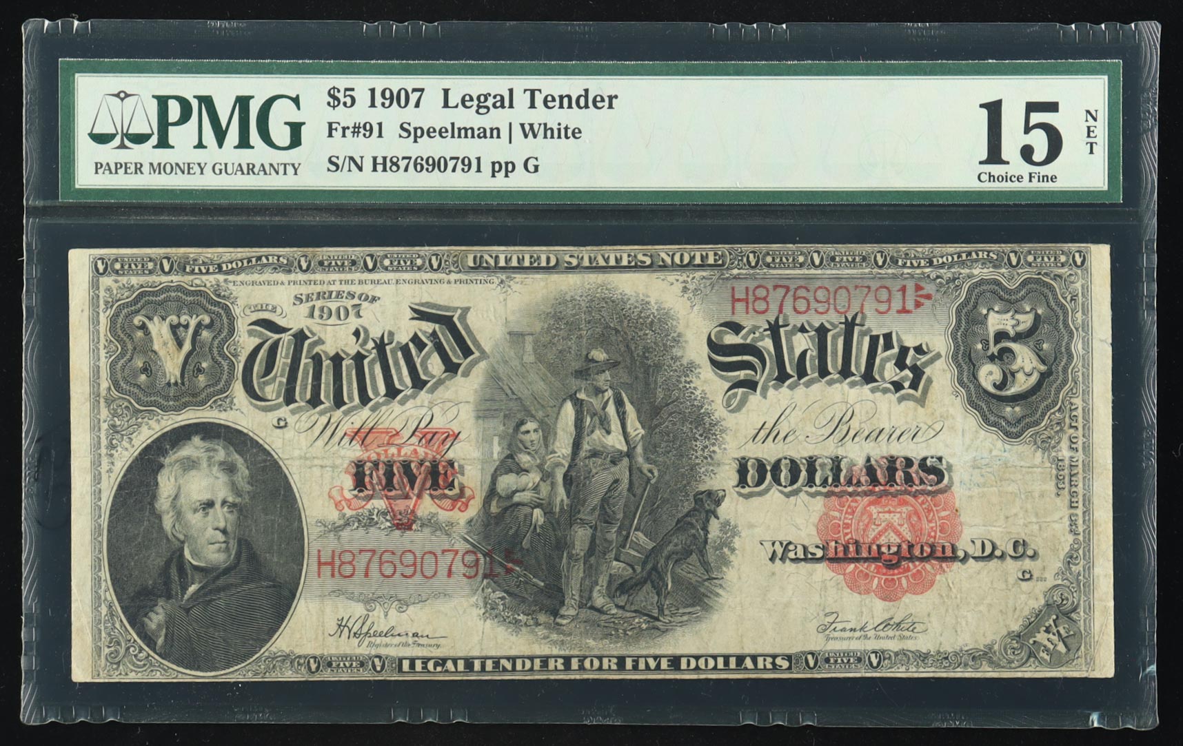 1907 United States Legal Tender $5 Five Note (PMG Choice Fine 15 NET)