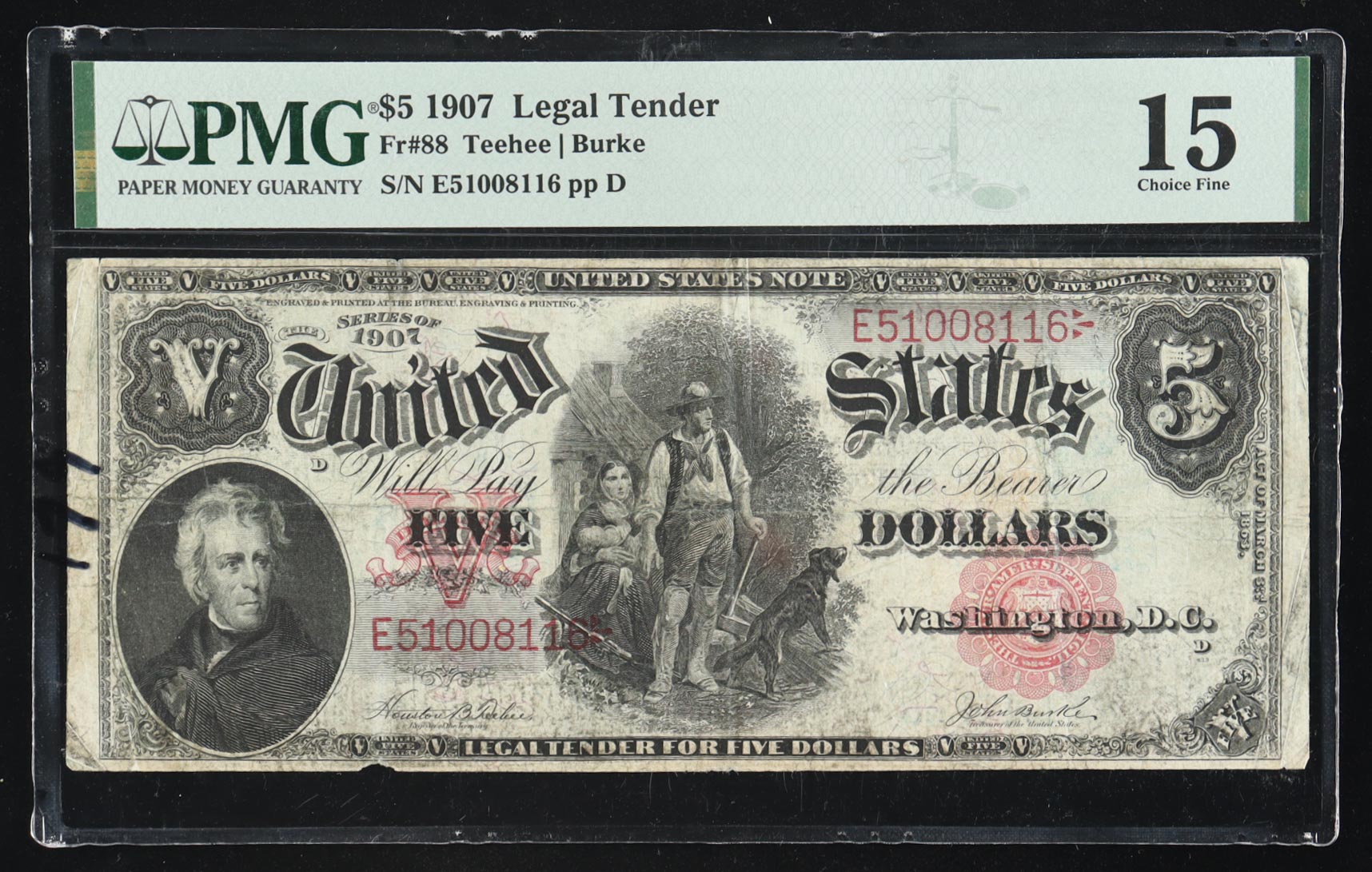 1907 United States Legal Tender $5 Five Note (PMG Choice Fine 15)