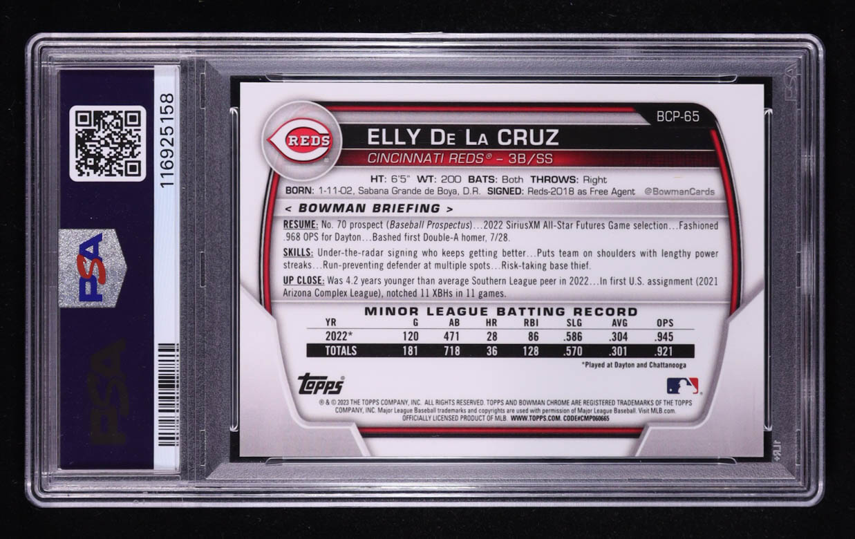 Elly De LA Cruz 2023 Bowman Chrome Prospects Blue Refractors #BCP65 RC #119/150 (PSA 10)