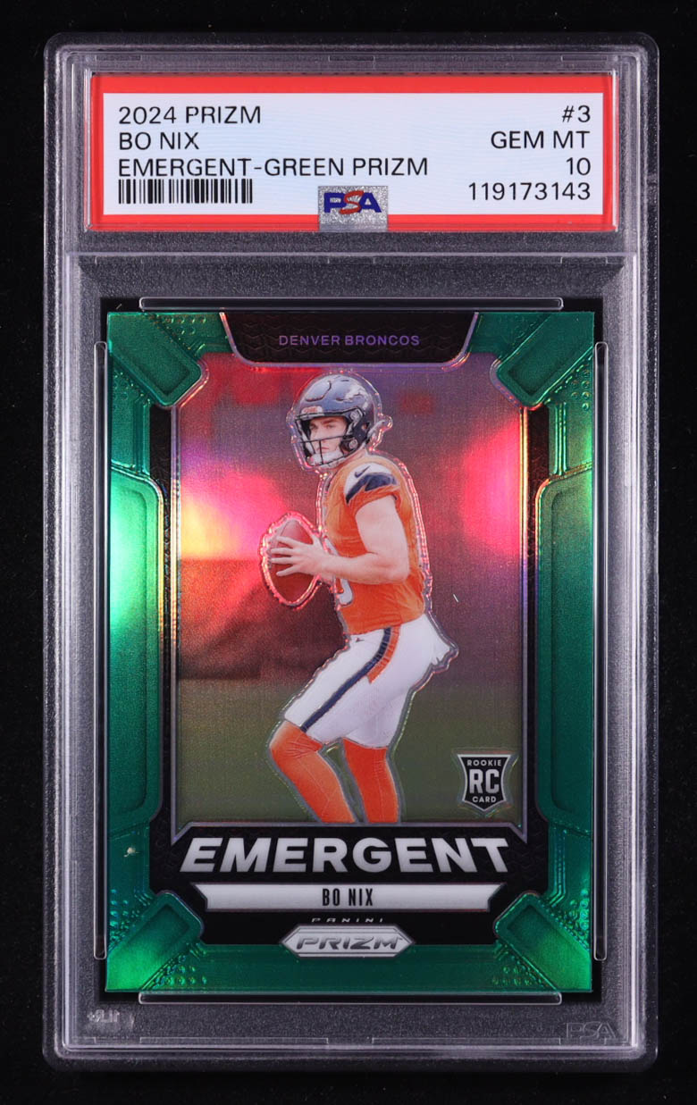 Bo Nix 2024 Panini Prizm Emergent Prizms Green #3 RC (PSA 10)
