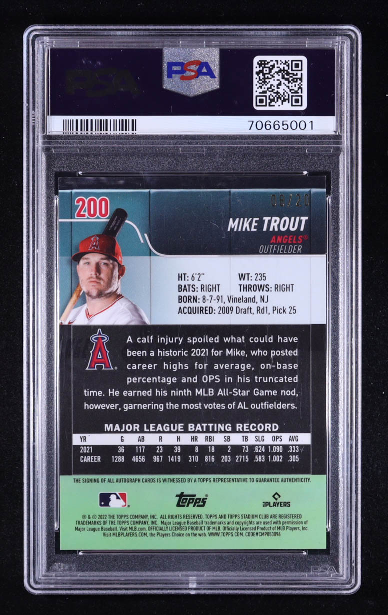 Mike Trout 2022 Stadium Club Chrome Insert Autographs #200 #08/20 (PSA 9)