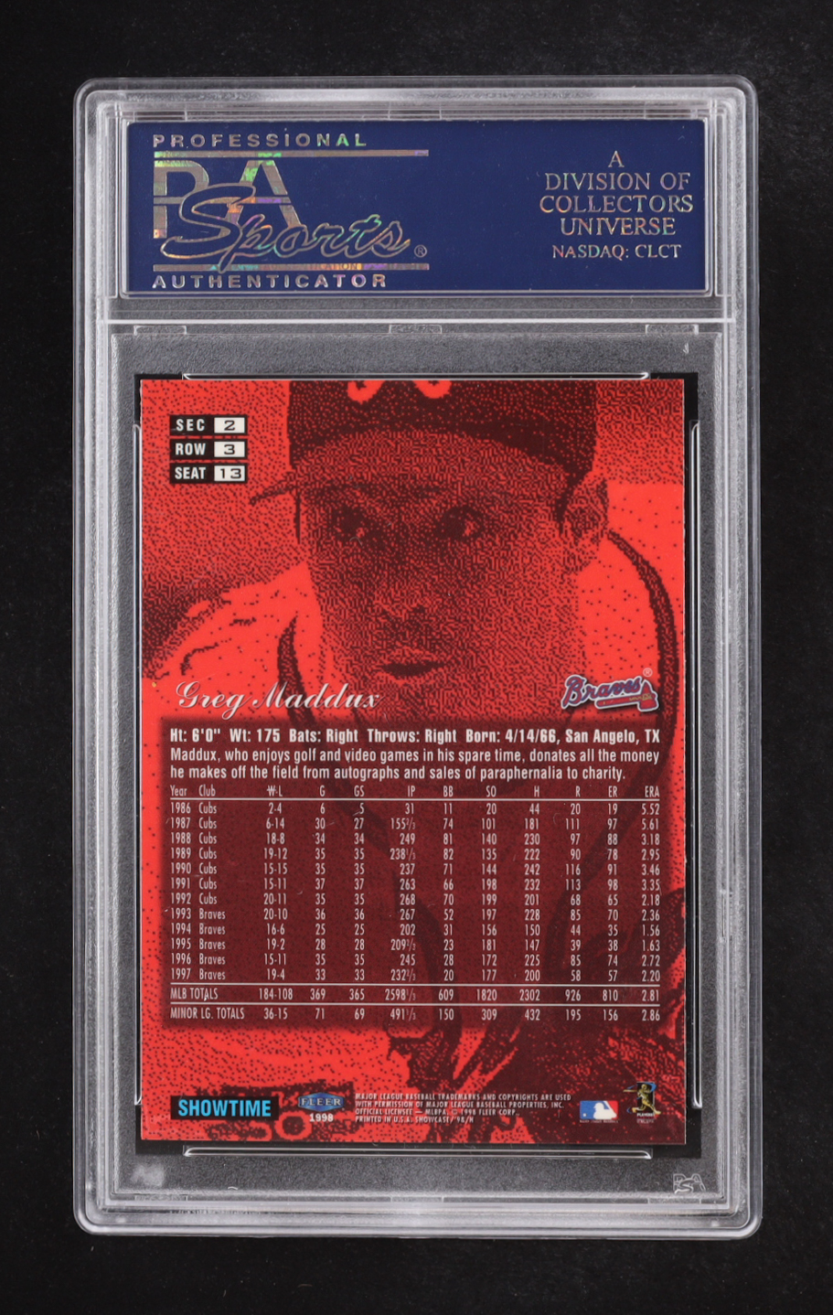 Greg Maddux 1998 Flair Showcase Row 3 #13 (PSA 10)