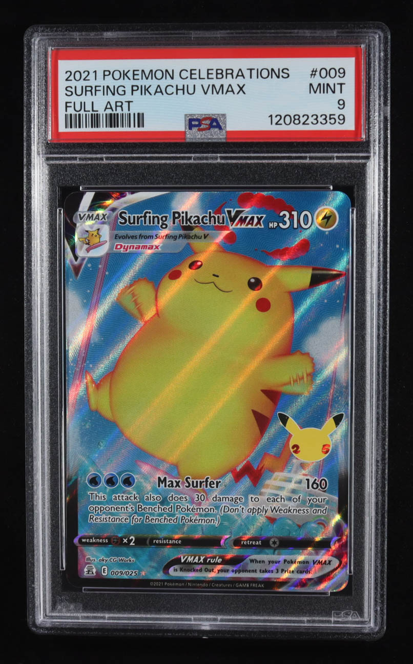 Surfing Pikachu VMAX 2021 Pokemon Celebrations Full Art #009 (PSA 9)