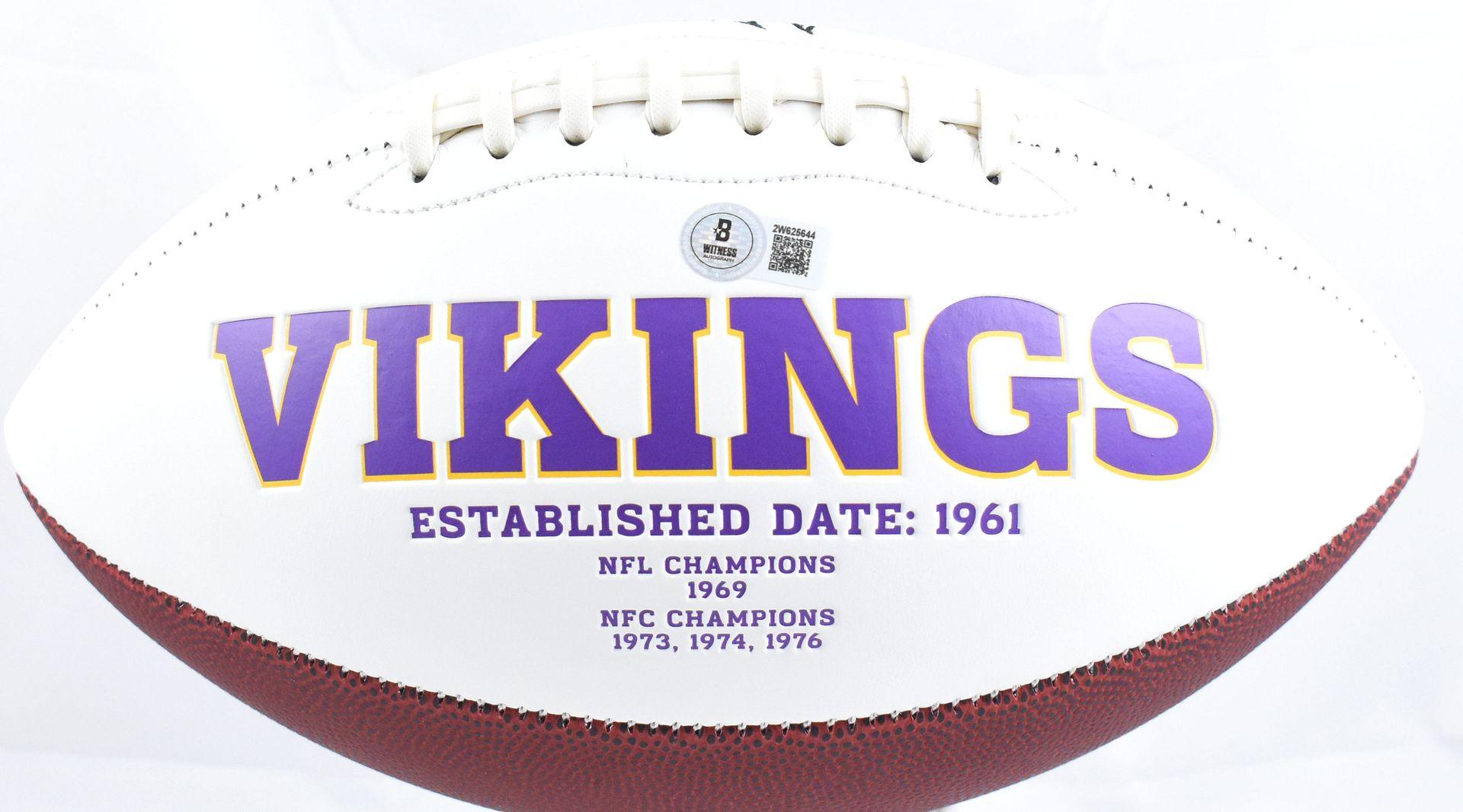 Minnesota Vikings logo football has been hand-signed and inscribed by Adrian Peterson.