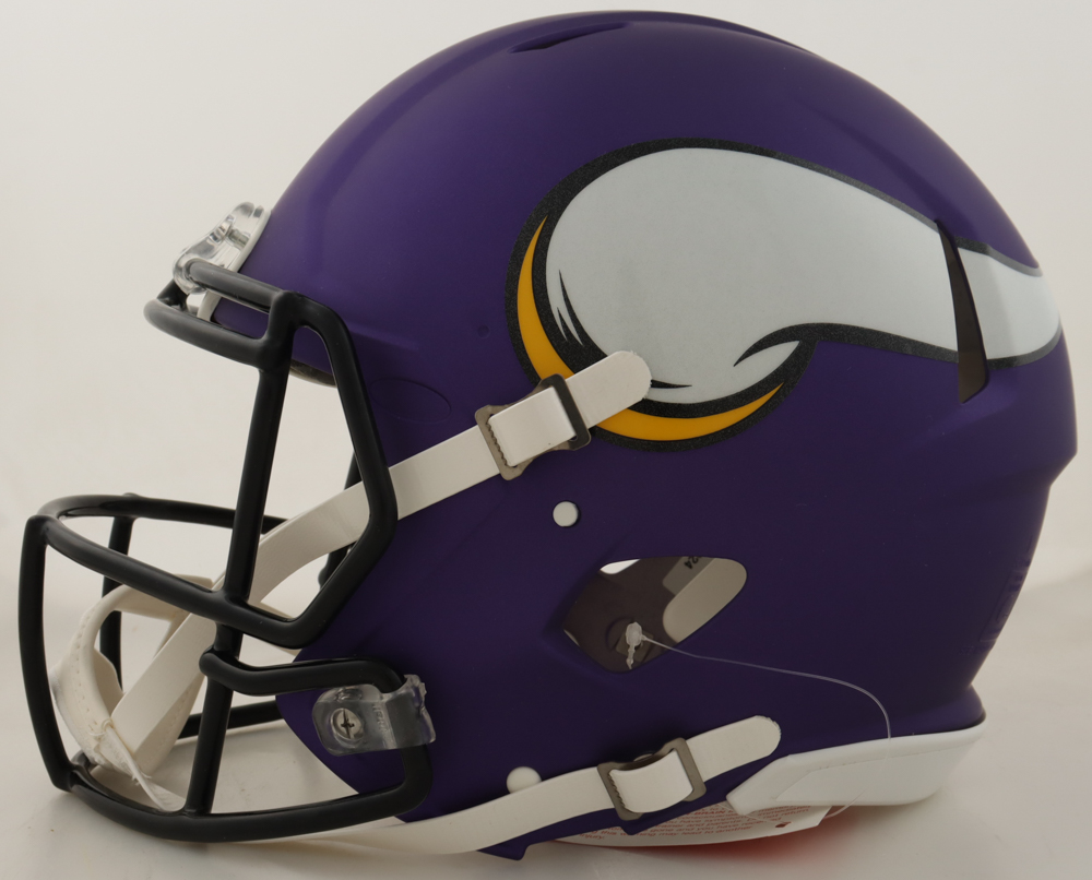 Riddell Minnesota Vikings full-size authentic on-field speed helmet. Hand-signed by JJ McCarthy.