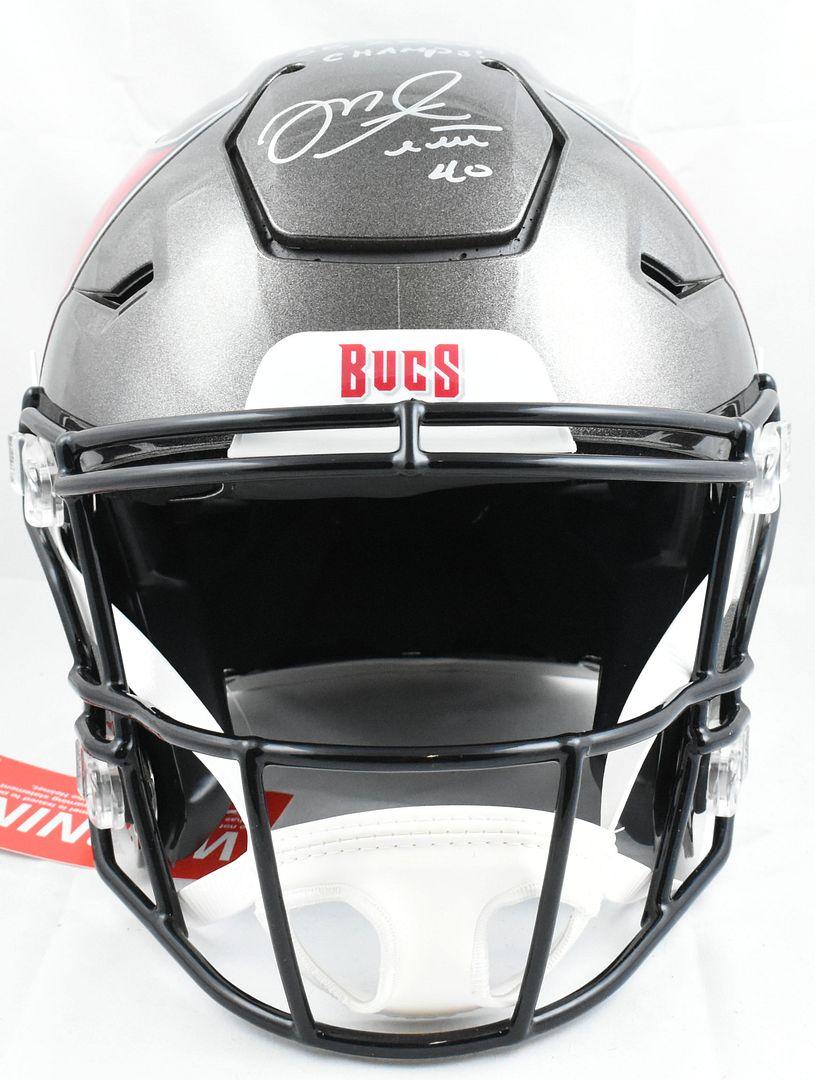 Riddell Tampa Bay Buccaneers full-size authentic on-field speedflex helmet. Hand-signed and inscribed by Mike Alstott.
