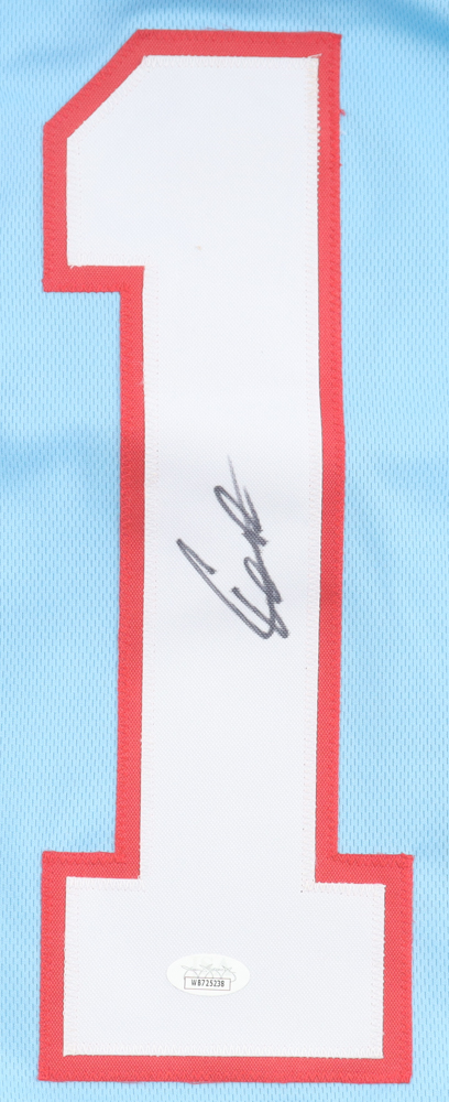 Custom jersey with everything sewn on, size XL. Hand-signed by Cameron Ward (Tennessee Titans).